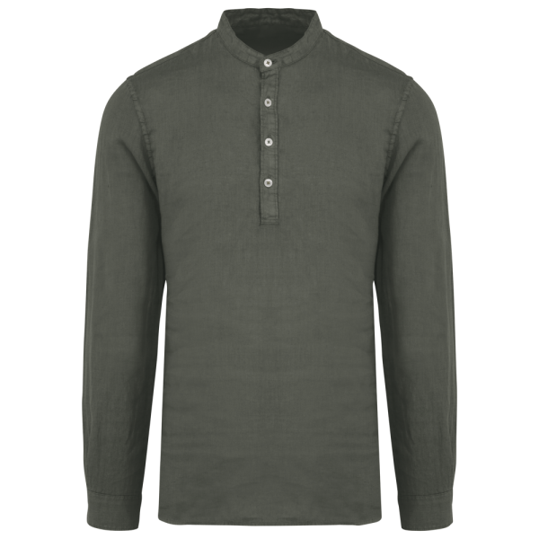 SP507 - Ausgewaschenes Herren-Hemd aus Leinen mit Maokragen
