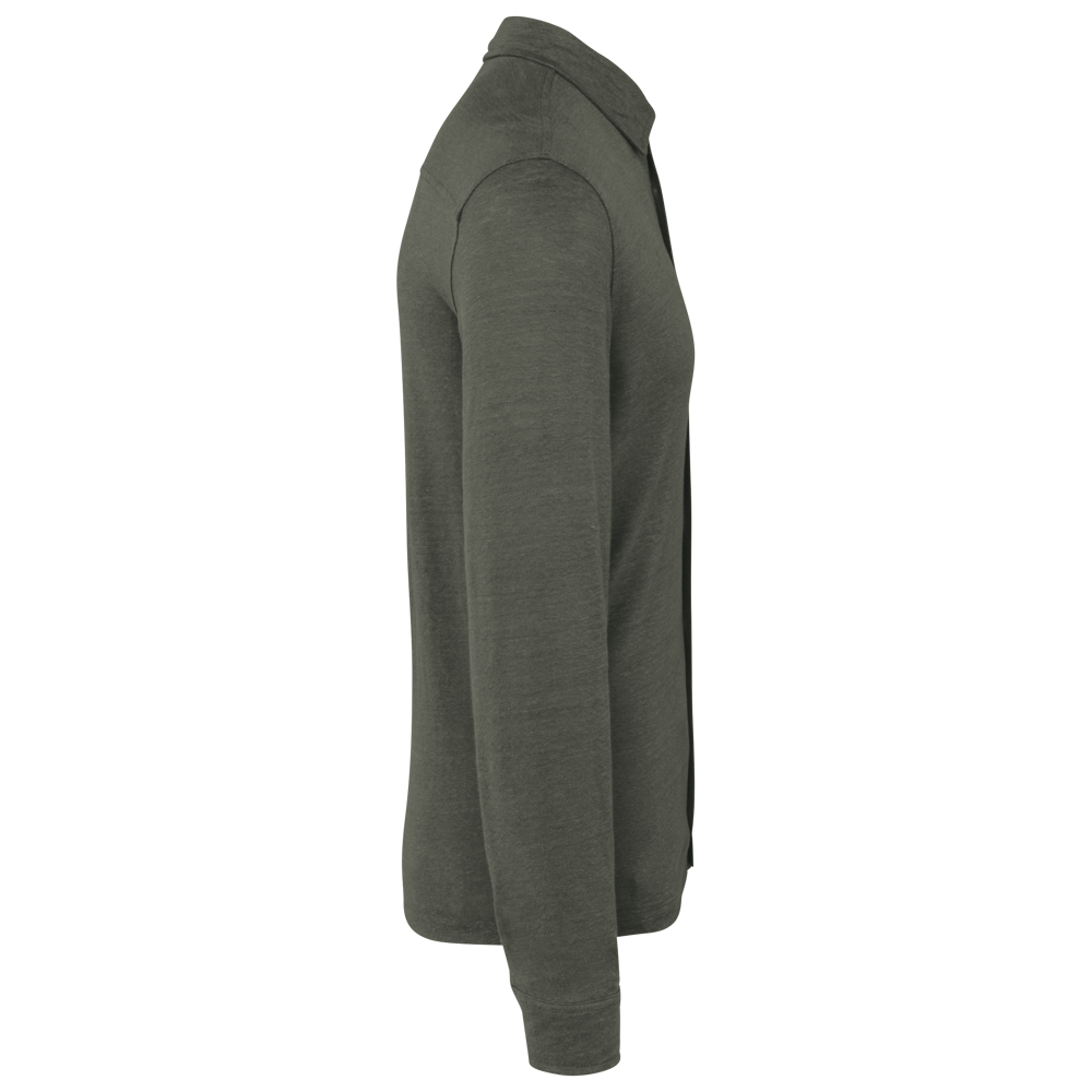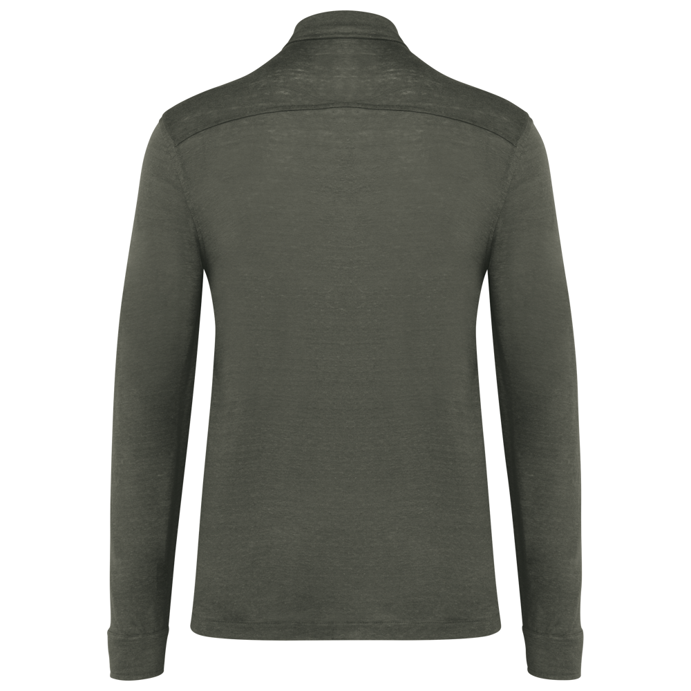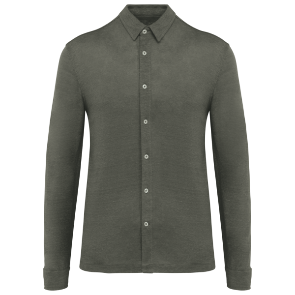 100% Leinen. Strick. Gerader Schnitt. Kragen mit Kragensteg. Rückenpasse. Geknöpfte Manschette mit Schlitz. Knopfleiste mit kontrastierenden Knöpfen aus recyceltem Kunststoff mit Perlmutt-Optik bei allen Farben. Einfache Ziernaht am Saum.