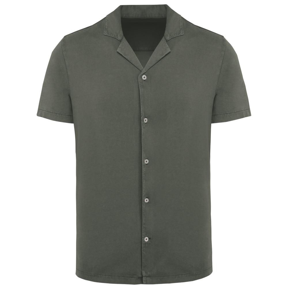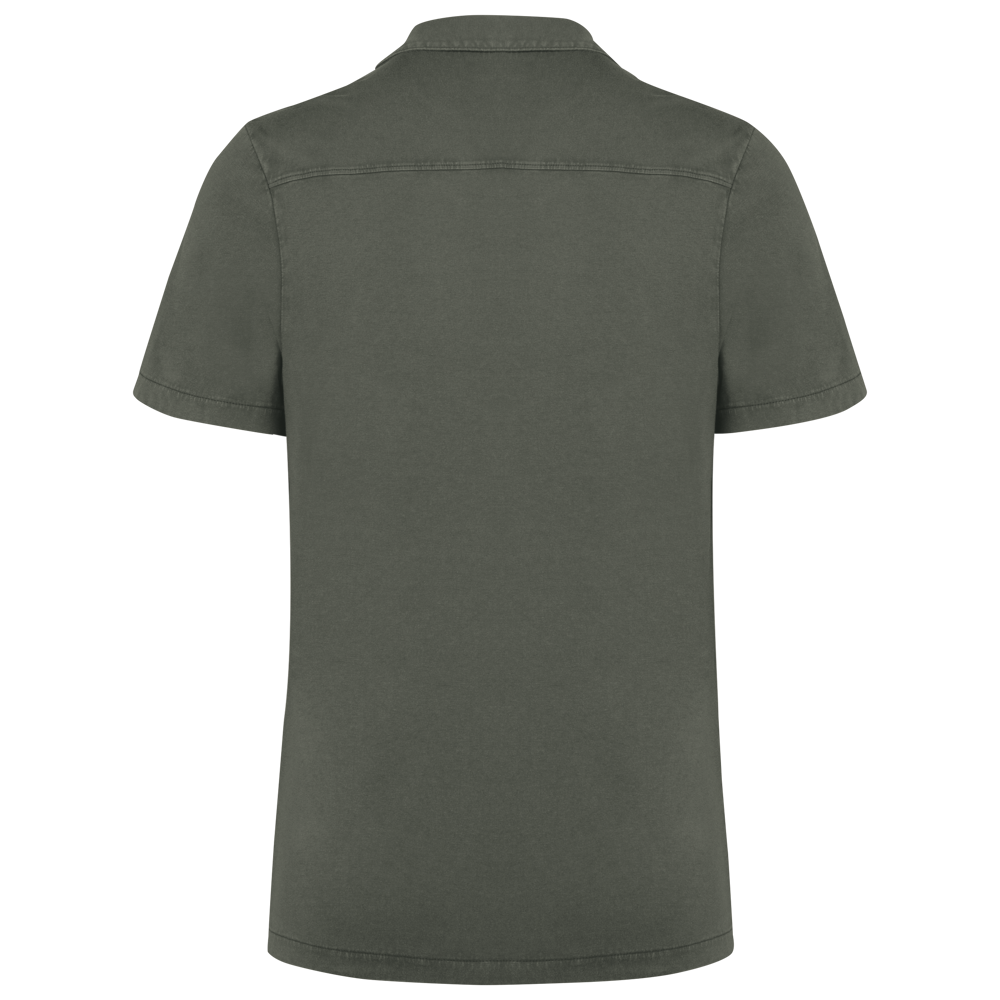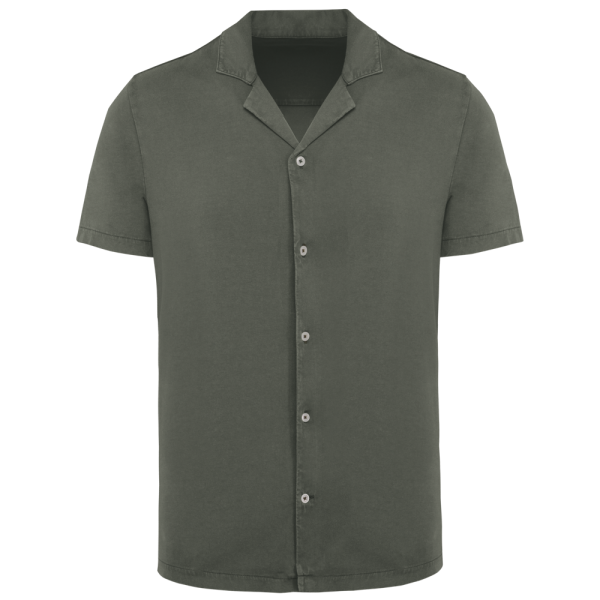 SP522 - Umweltfreundliches ausgewaschenes Jersey-Herrenhemd mit kurzen Ärmeln und Bowling-Kragen