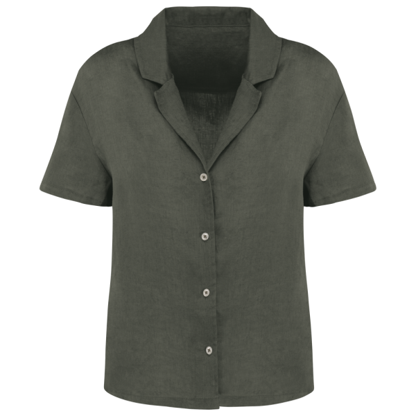 SP523 - Damenhemd aus Leinen mit kurzen Ärmeln und Bowling-Kragen