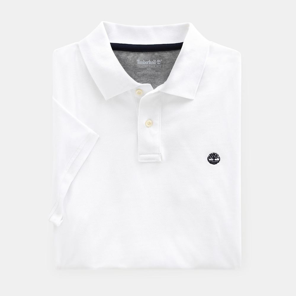 100 % Bio-Baumwolle. Knopfleiste mit zwei Knöpfen. Seitliche Schlitze. Lässiger, gerader Schnitt. Kontrastfarbenes Nackenband. Links auf der Brust aufgesticktes Timberland®-Baum-Markenlogo.