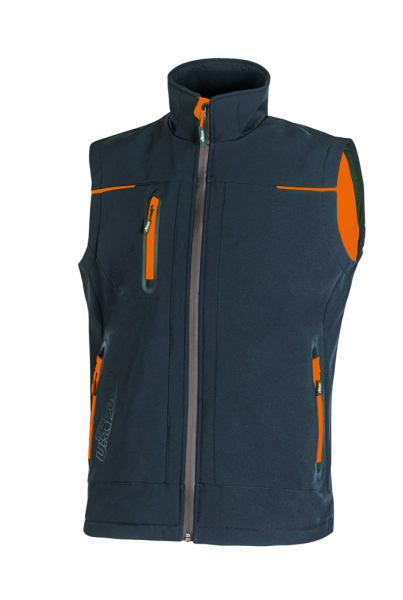 96% Polyester 4% Elasthan. Soft-Shell Weste mit U-Tex Membran, ist dehnbar in 4 Richtungen, wasserdicht, winddicht, atmungsaktiv, widerstandsfähig sehr bequem mit einem weichem Neon-Microfleece Innenfutter. Zentraler wasserdichter Reißverschluss. 2 Fronttaschen mit Neonreißverschluss und innen befindet sich ein elastischer Kordelzug um den Jackenbund einzustellen, dadurch kein Hängenbleiben. Die Handytasche auf der Brust mit der Free Sound-Technologie und Neonreißverschluss. 2 große innen Taschen. Geformter Saum. Reflexband hinten am Kragen. Das U-Power-Logo ist Ton in Ton.