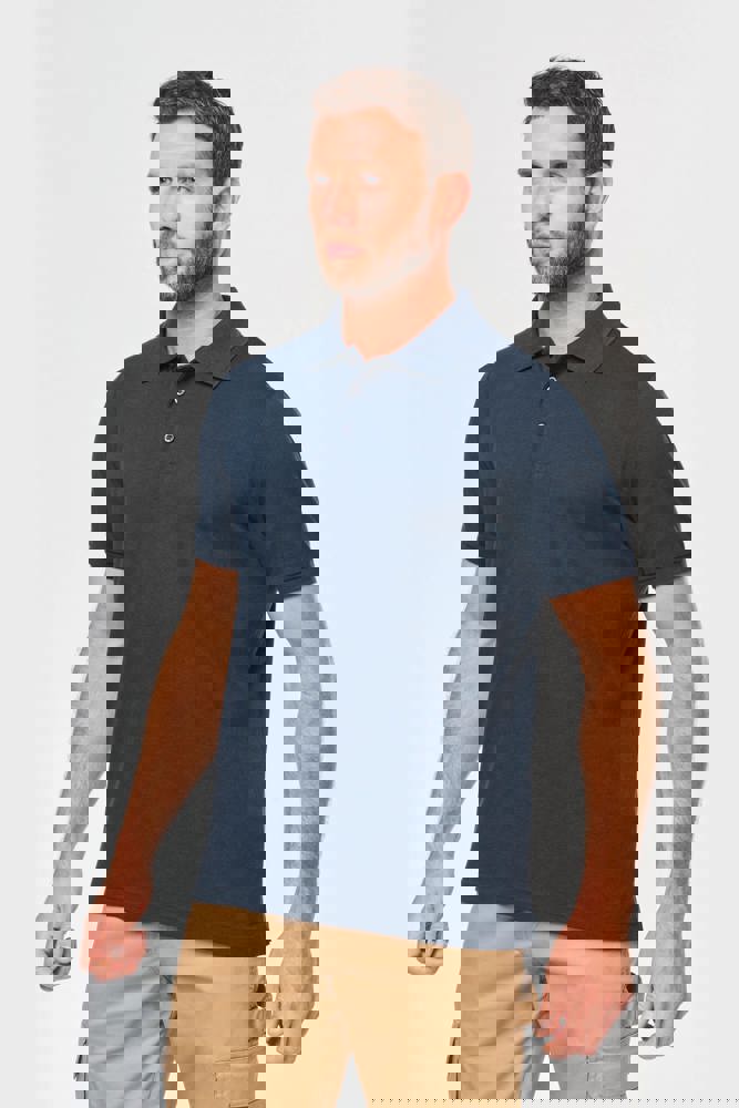 Uni : 60 % Baumwolle / 40 % Polyester. Aus 60 % biologischer Baumwolle und 40 % recyceltem Polyester. Farbe Oxford Grey. Farbton Oxford Grey : 90 % Baumwolle/10 % Viskose. Aus 90 % biologischer Baumwolle. Alle Farben sind aus Bio-Baumwolle hergestellt. Pikeetrikot. Waschbar bis 60°. Gerader Schnitt. Kragen und Ärmelabschlüsse in Feinripp 1x1 mit Fischgrätnackenband in kontrastierendem Orangeton. Knopfleiste mit 3 Ton-in-Ton-Knöpfen. Erstes Knopfloch horizontal. Seitliche Schlitze mit Fischgrätband in kontrastierendem Orangeton. Doppelnaht am unteren Saum. Herausreißbares Markenetikett zur leichteren Veredelung.