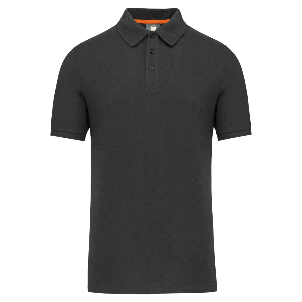 Uni : 60 % Baumwolle / 40 % Polyester. Aus 60 % biologischer Baumwolle und 40 % recyceltem Polyester. Farbe Oxford Grey. Farbton Oxford Grey : 90 % Baumwolle/10 % Viskose. Aus 90 % biologischer Baumwolle. Alle Farben sind aus Bio-Baumwolle hergestellt. Pikeetrikot. Waschbar bis 60°. Gerader Schnitt. Kragen und Ärmelabschlüsse in Feinripp 1x1 mit Fischgrätnackenband in kontrastierendem Orangeton. Knopfleiste mit 3 Ton-in-Ton-Knöpfen. Erstes Knopfloch horizontal. Seitliche Schlitze mit Fischgrätband in kontrastierendem Orangeton. Doppelnaht am unteren Saum. Herausreißbares Markenetikett zur leichteren Veredelung.