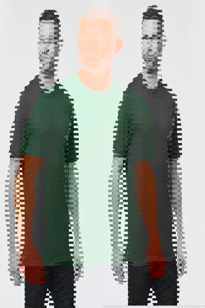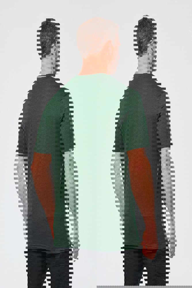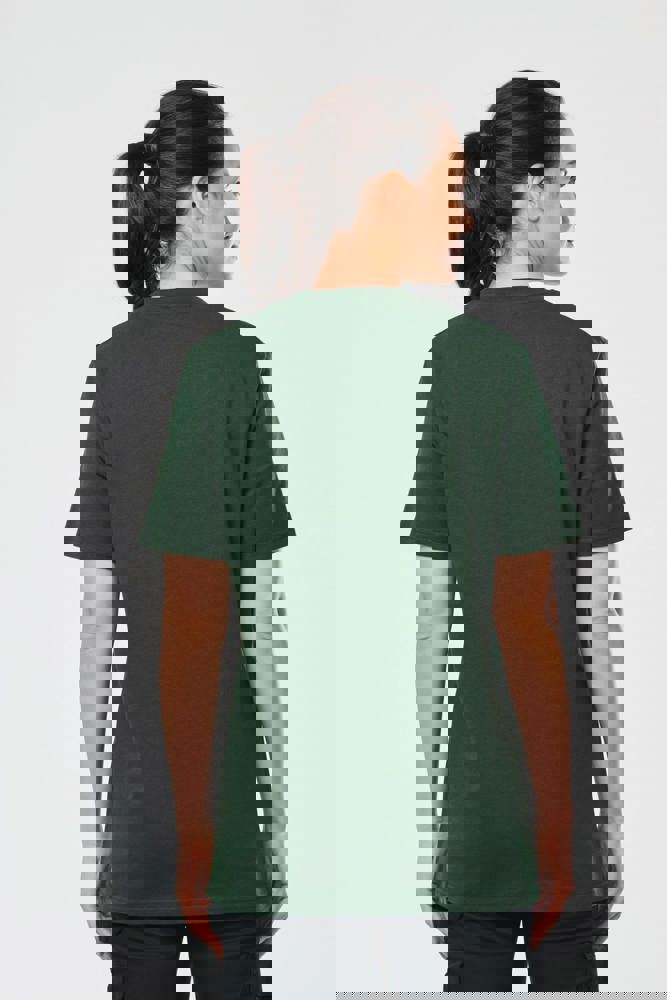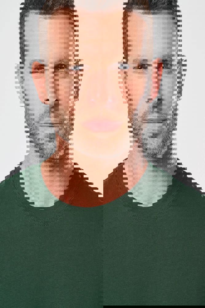 Uni: 100 % Baumwolle. Aus 100 % biologischer Baumwolle. Melierte Farbtöne: 90 % Baumwolle / 10% viskose. Aus 90 % biologische Baumwolle. Fluoreszierende Farbe: 65 % Polyester/35 % Baumwolle. Aus 65 % recyceltem Polyester gefertigt. Reguläre Passform. 2x1-Rundhalsausschnitt mit Strickbündchen und Elasthan sowie silver farbenem Nackenband auf einfarbigen und Farben sowie Ton-auf-Ton auf fluoreszierenden Farben. Doppelnähte an Ärmelbündchen und unterem Saum. Markenetikett zum Abreißen.