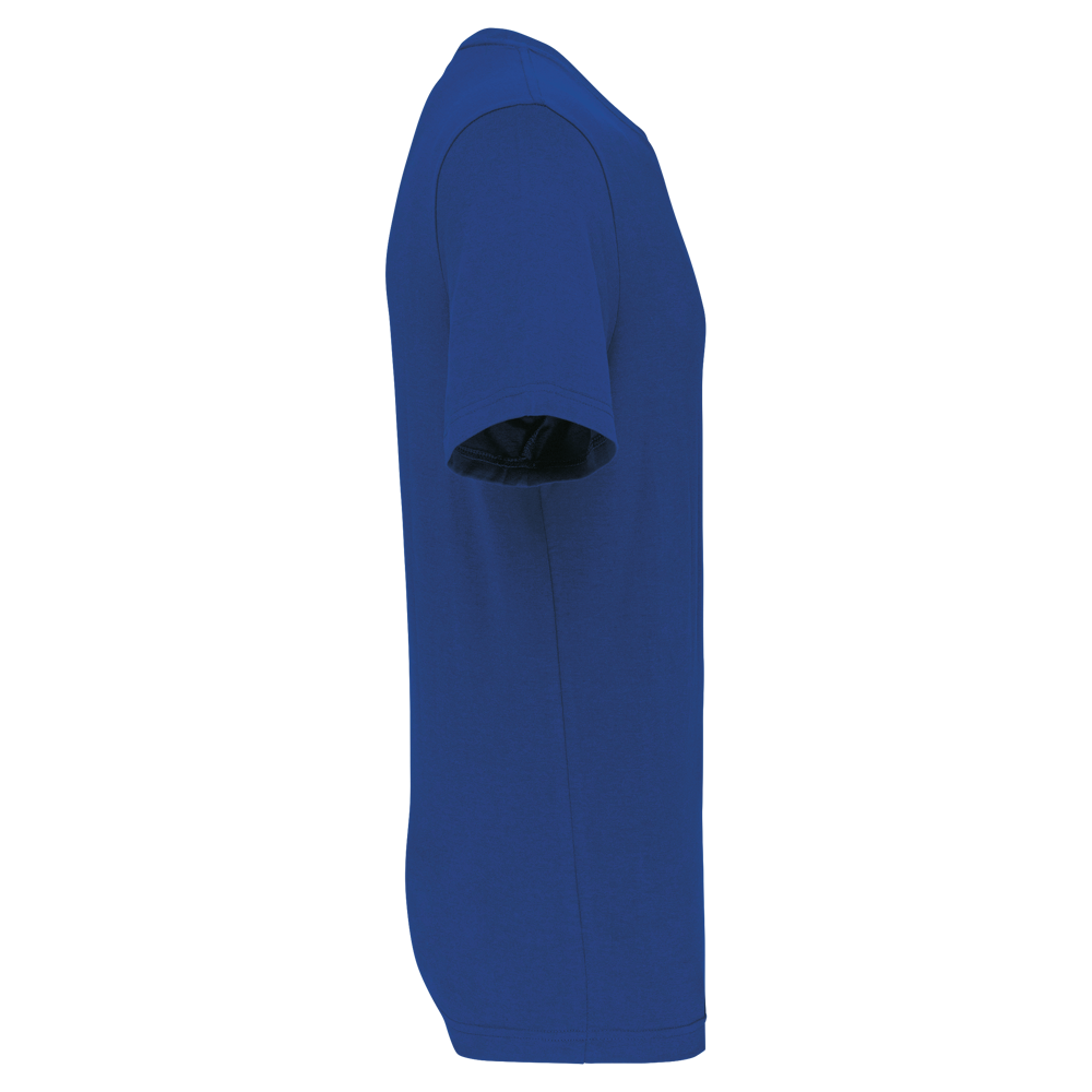 Uni : 60 % Baumwolle / 40 % Polyester. Aus 60 % biologischer Baumwolle und 40 % recyceltem Polyester. Farbton Oxford Grey : 90 % Baumwolle/10 % Viskose. Aus 90 % biologischer Baumwolle. Alle Farben sind aus Bio-Baumwolle hergestellt. Weicher Stoff, Enzymwäsche. Waschbar bis 60°. Gerader Schnitt. Rundhalsausschnitt mit 1x1-Strickbündchen. Fischgrätnackenband in kontrastfarbenem Orangeton am Halsausschnitt (Verlängerung Rücken–Schulter mit Ausnahme der Farbe Weiß)). Verstärkte Nähte an den Schultern. Herausreißbares Markenetikett zur leichteren Veredelung.