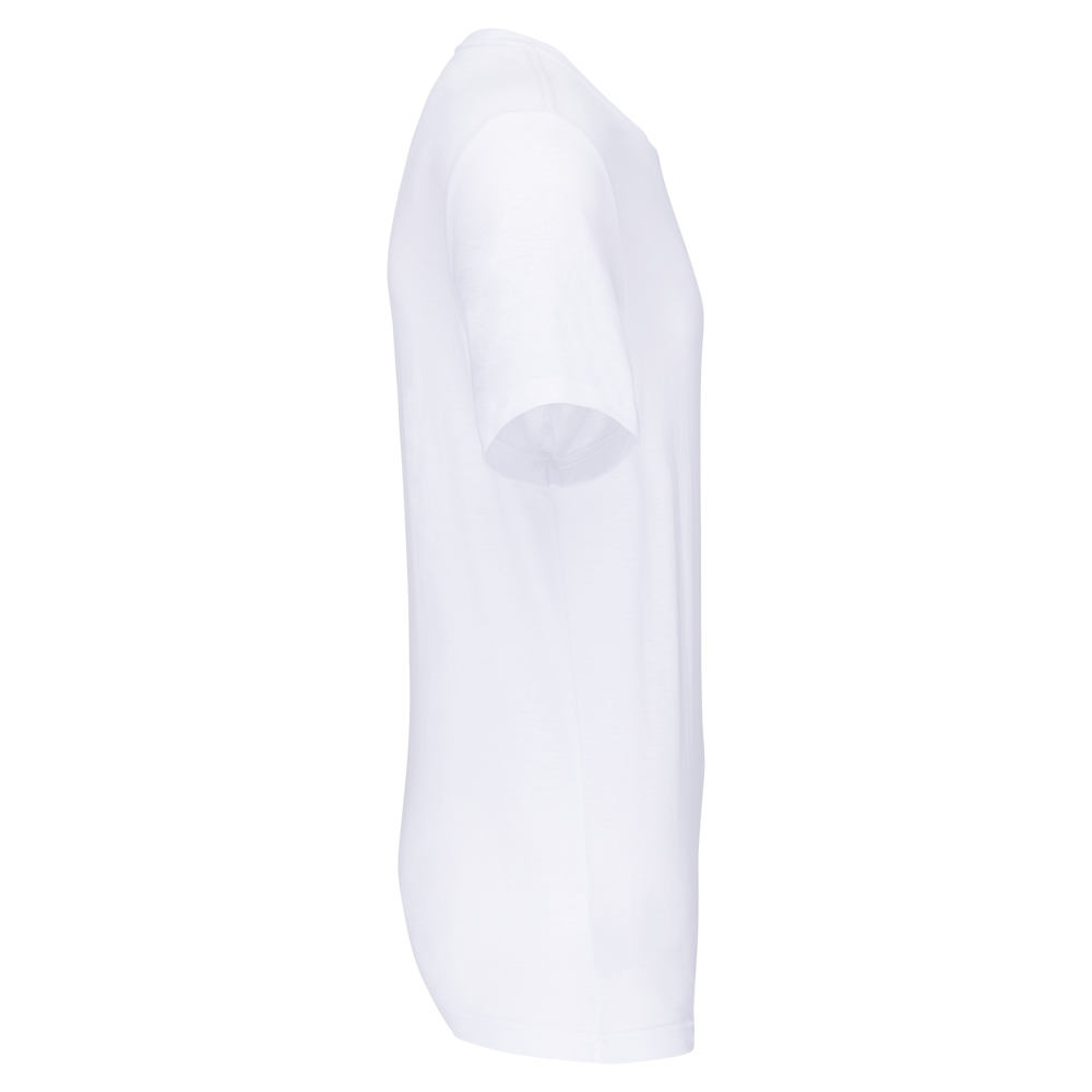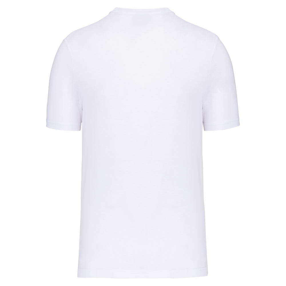 Uni : 60 % Baumwolle / 40 % Polyester. Aus 60 % biologischer Baumwolle und 40 % recyceltem Polyester. Farbton Oxford Grey : 90 % Baumwolle/10 % Viskose. Aus 90 % biologischer Baumwolle. Alle Farben sind aus Bio-Baumwolle hergestellt. Weicher Stoff, Enzymwäsche. Waschbar bis 60°. Gerader Schnitt. Rundhalsausschnitt mit 1x1-Strickbündchen. Fischgrätnackenband in kontrastfarbenem Orangeton am Halsausschnitt (Verlängerung Rücken–Schulter mit Ausnahme der Farbe Weiß)). Verstärkte Nähte an den Schultern. Herausreißbares Markenetikett zur leichteren Veredelung.