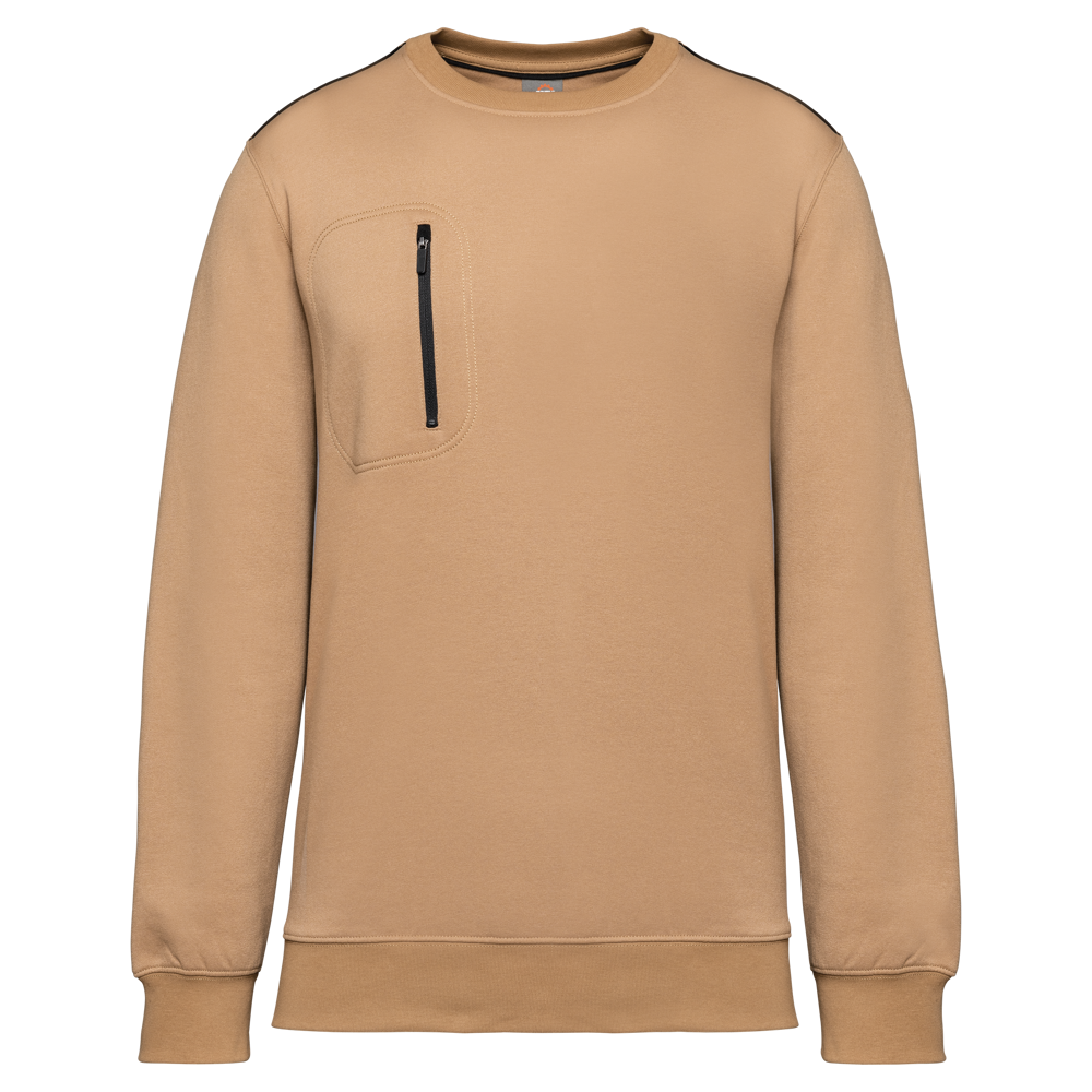 70 % Polyester / 30 % Baumwolle. Gekämmte Baumwolle. Gebürsteter Molton mit 3 Nähten und LSF-Behandlung (Low Shrinkage Fleece). Vortex-Faden. Bei 60 °C waschbar. Gerader Schnitt. Rundhalsausschnitt mit 1x1-Strickbündchen und farblich abgestimmtem Nackenband sowie kontrastfarbener Paspel. Halbmondförmiger Halsausschnitt auf der Rückseite für eine einfache Markenveredelung auf der Innenseite. Kontrastfarbene Paspel auf den Schultern. Brusttasche rechts mit kontrastfarbenem Nylon-Reißverschluss und kontrastfarbenem Reißverschlussanhänger. Farblich abgestimmte Doppelnaht rund um die Tasche. Markenetikett zum Abreißen.
