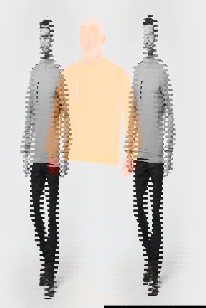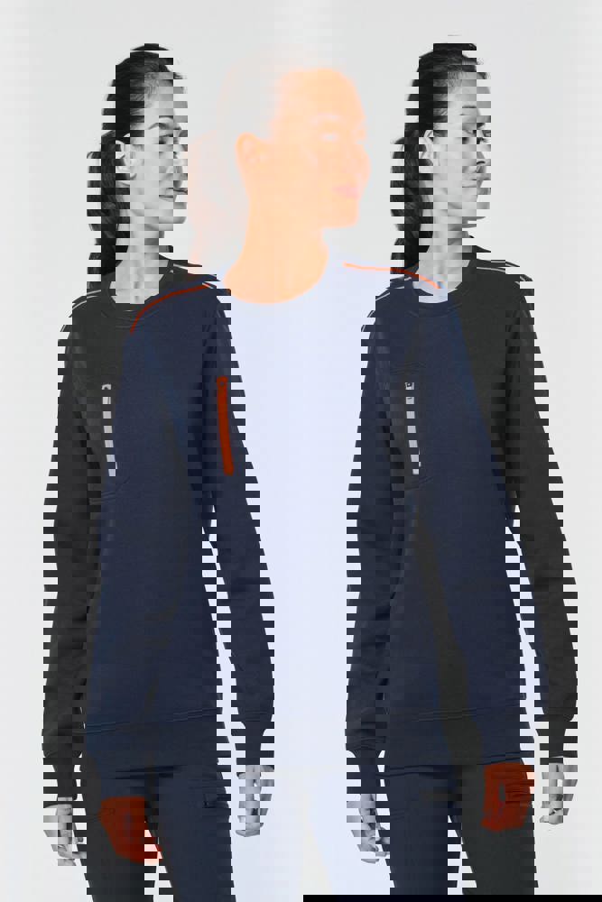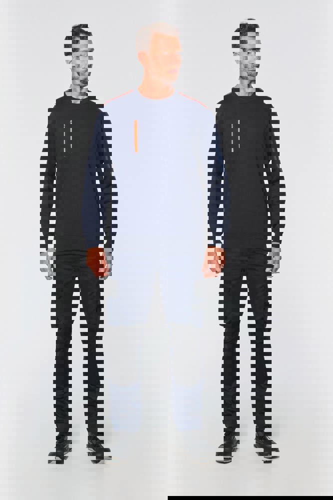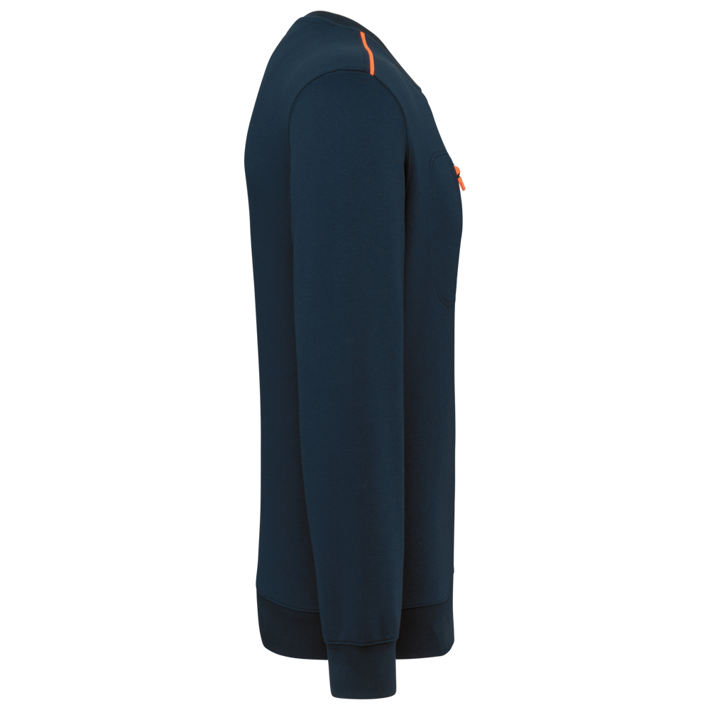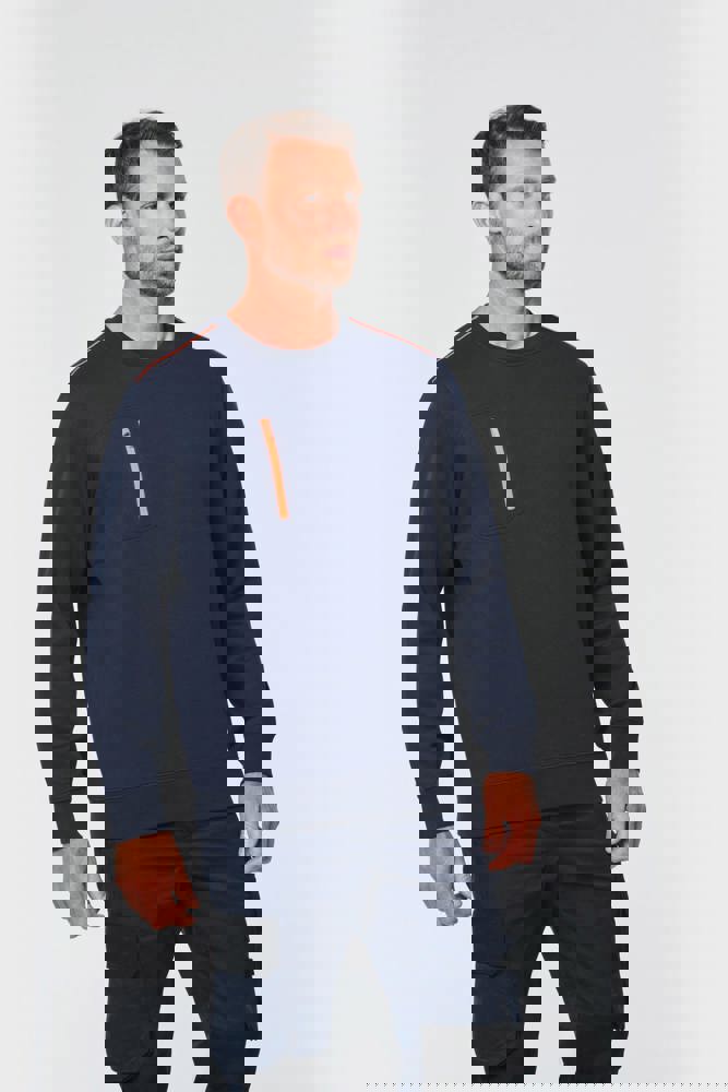 70 % Polyester / 30 % Baumwolle. Gekämmte Baumwolle. Gebürsteter Molton mit 3 Nähten und LSF-Behandlung (Low Shrinkage Fleece). Vortex-Faden. Bei 60 °C waschbar. Gerader Schnitt. Rundhalsausschnitt mit 1x1-Strickbündchen und farblich abgestimmtem Nackenband sowie kontrastfarbener Paspel. Halbmondförmiger Halsausschnitt auf der Rückseite für eine einfache Markenveredelung auf der Innenseite. Kontrastfarbene Paspel auf den Schultern. Brusttasche rechts mit kontrastfarbenem Nylon-Reißverschluss und kontrastfarbenem Reißverschlussanhänger. Farblich abgestimmte Doppelnaht rund um die Tasche. Markenetikett zum Abreißen.