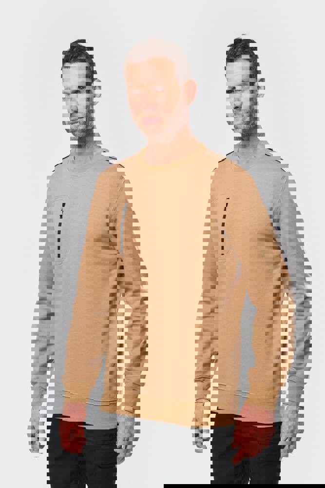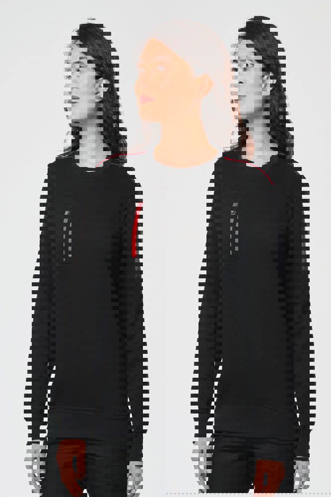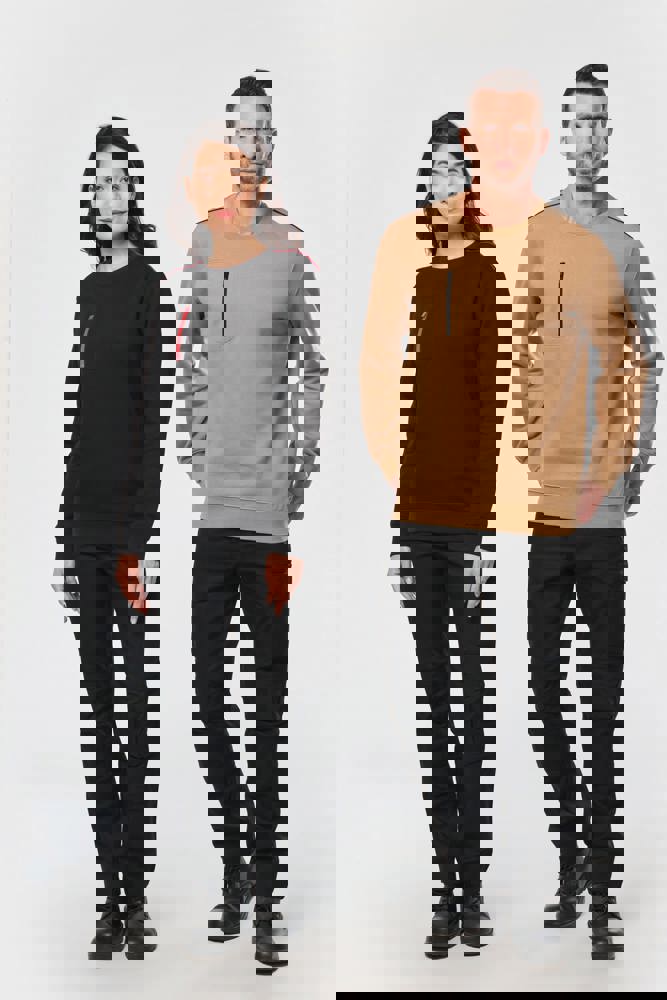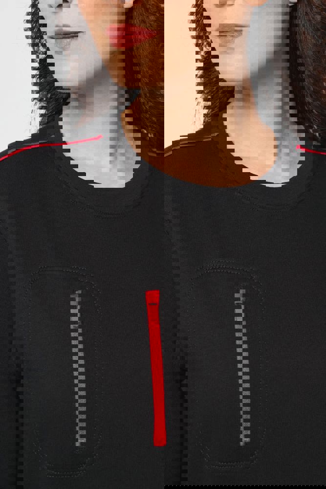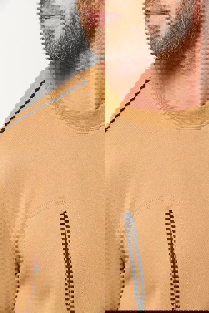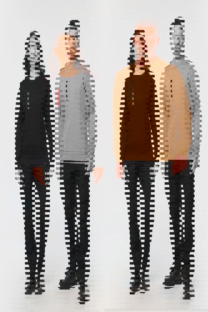 70 % Polyester / 30 % Baumwolle. Gekämmte Baumwolle. Gebürsteter Molton mit 3 Nähten und LSF-Behandlung (Low Shrinkage Fleece). Vortex-Faden. Bei 60 °C waschbar. Gerader Schnitt. Rundhalsausschnitt mit 1x1-Strickbündchen und farblich abgestimmtem Nackenband sowie kontrastfarbener Paspel. Halbmondförmiger Halsausschnitt auf der Rückseite für eine einfache Markenveredelung auf der Innenseite. Kontrastfarbene Paspel auf den Schultern. Brusttasche rechts mit kontrastfarbenem Nylon-Reißverschluss und kontrastfarbenem Reißverschlussanhänger. Farblich abgestimmte Doppelnaht rund um die Tasche. Markenetikett zum Abreißen.