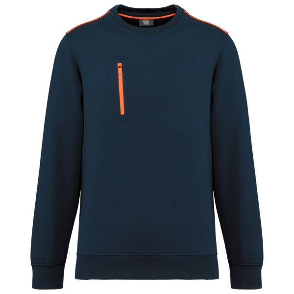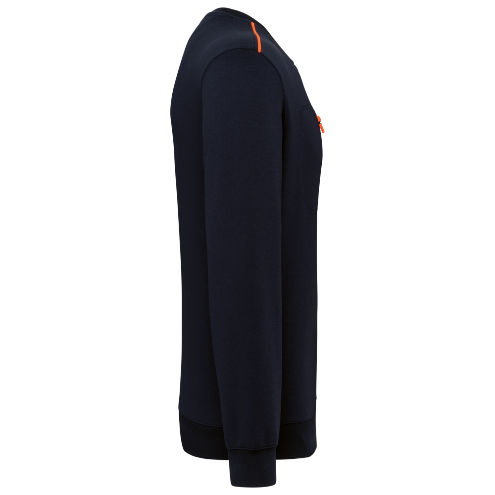 70 % Polyester / 30 % Baumwolle. Gekämmte Baumwolle. Gebürsteter Molton mit 3 Nähten und LSF-Behandlung (Low Shrinkage Fleece). Vortex-Faden. Bei 60 °C waschbar. Gerader Schnitt. Rundhalsausschnitt mit 1x1-Strickbündchen und farblich abgestimmtem Nackenband sowie kontrastfarbener Paspel. Halbmondförmiger Halsausschnitt auf der Rückseite für eine einfache Markenveredelung auf der Innenseite. Kontrastfarbene Paspel auf den Schultern. Brusttasche rechts mit kontrastfarbenem Nylon-Reißverschluss und kontrastfarbenem Reißverschlussanhänger. Farblich abgestimmte Doppelnaht rund um die Tasche. Markenetikett zum Abreißen.