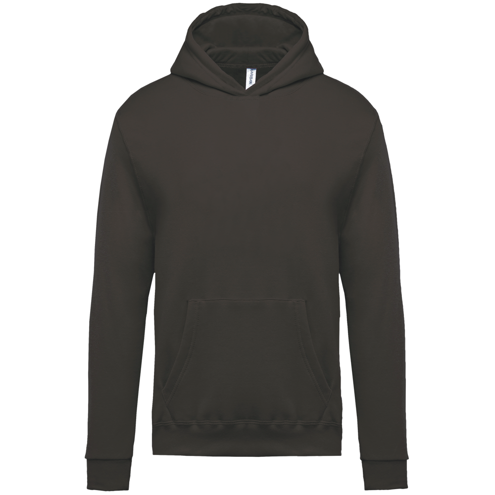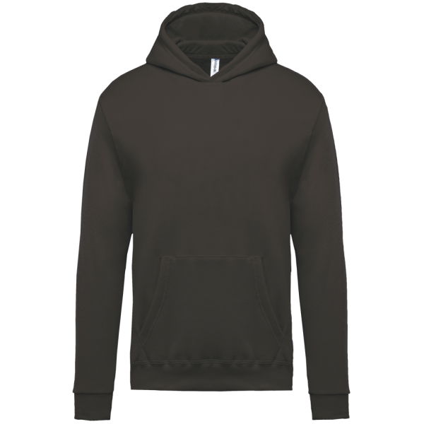 80 % Baumwolle / 20 % Polyester. Gekämmte Baumwolle. Gebürstetes Fleece. Set-in-Ärmel. Gefütterte Kapuze. Kängurutaschen. Strickbündchen an Ärmeln und Saum.