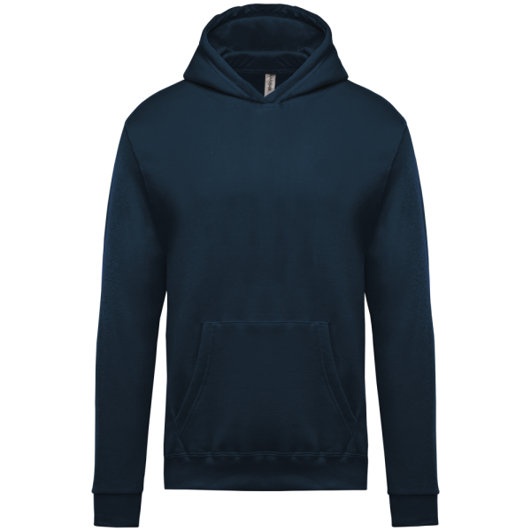 80 % Baumwolle / 20 % Polyester. Gekämmte Baumwolle. Gebürstetes Fleece. Set-in-Ärmel. Gefütterte Kapuze. Kängurutaschen. Strickbündchen an Ärmeln und Saum.