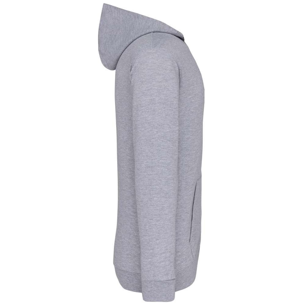 80 % Baumwolle / 20 % Polyester. Gekämmte Baumwolle. Gebürstetes Fleece. Set-in-Ärmel. Gefütterte Kapuze. Kängurutaschen. Strickbündchen an Ärmeln und Saum.