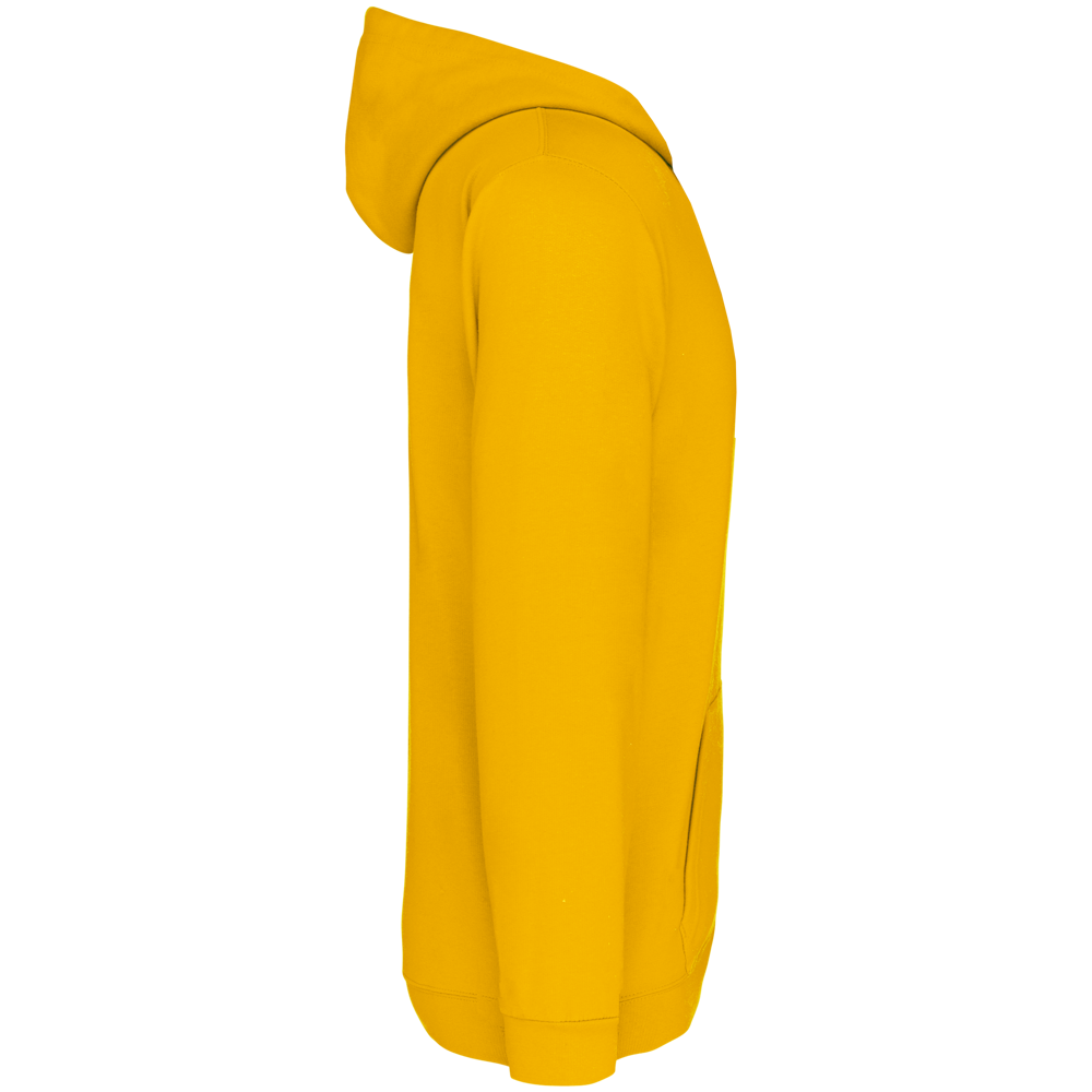 80 % Baumwolle / 20 % Polyester. Gekämmte Baumwolle. Gebürstetes Fleece. Set-in-Ärmel. Gefütterte Kapuze. Kängurutaschen. Strickbündchen an Ärmeln und Saum.