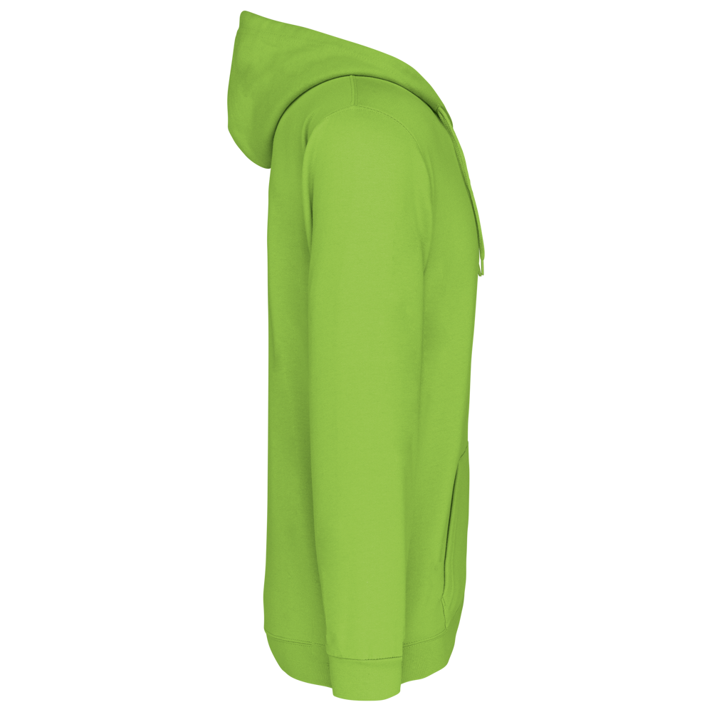 80 % Baumwolle / 20 % Polyester. Gekämmte Baumwolle. Gebürstetes Fleece. Set-in-Ärmel. Nylon-Reißverschluss. Gefütterte Kapuze mit Ton-in-Ton-Kordelzug. Kängurutaschen. Strickbündchen an Ärmeln und Saum.