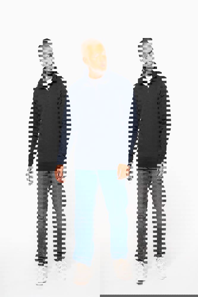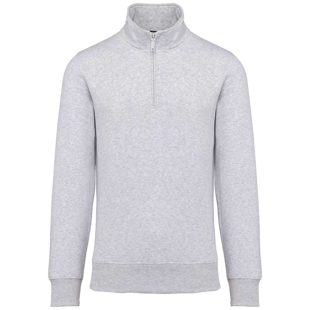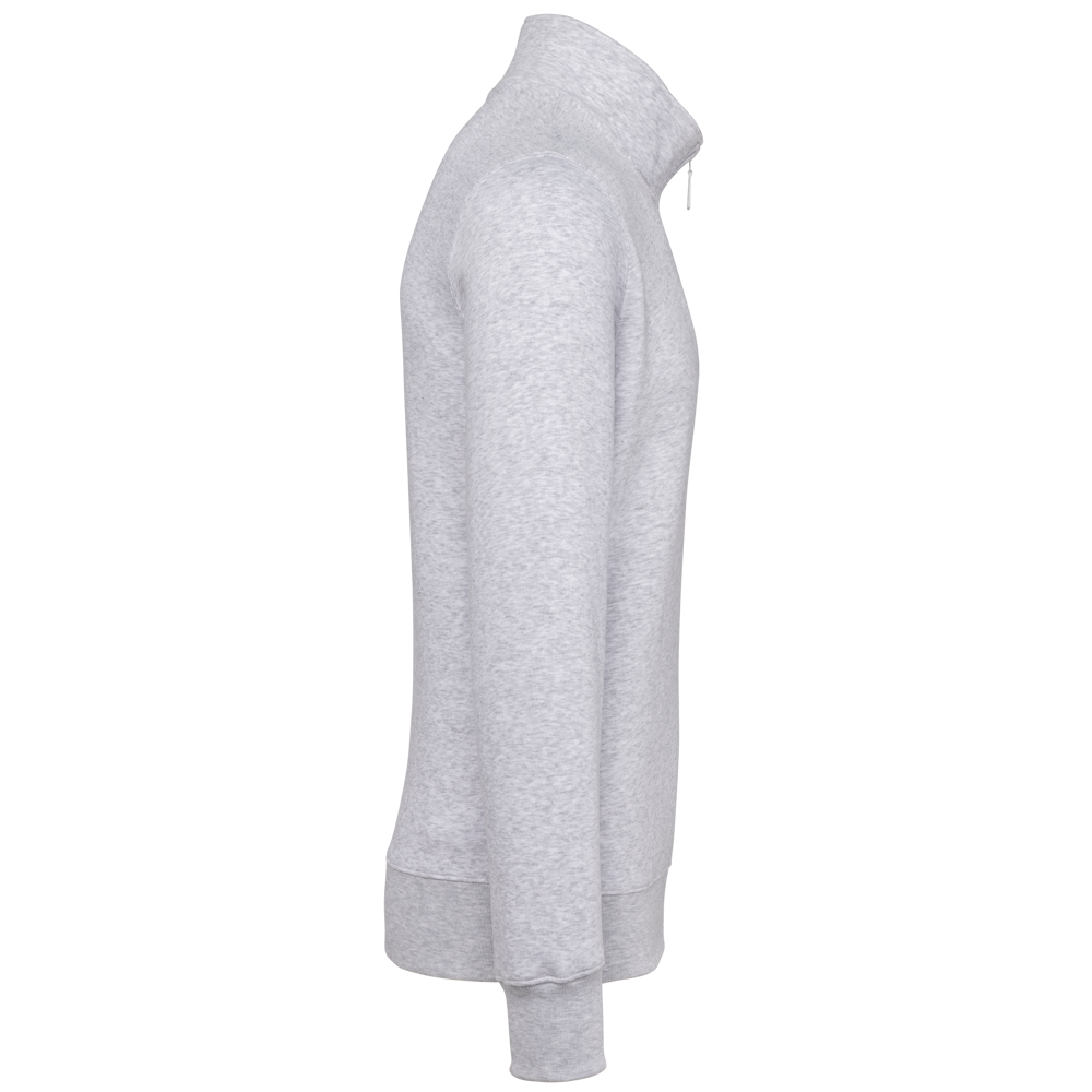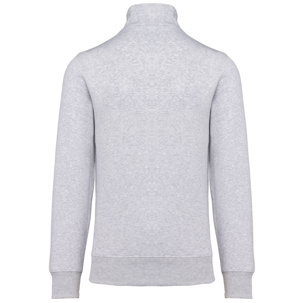 80 % Baumwolle / 20 % Polyester (Ash Heather : 79% Baumwolle / 20% Polyester / 1% Viskose). Außenseiteaus 100% Baumwolle. LSF-Behandlung (Low Shrinkage Fleece: vorgeschrumpftes Fleece). Gebürstetes Fleece mit drei Fäden aus gekämmter Baumwolle. Set-in-Ärmel. Kragen mit farblich abgestimmtem Kunststoff-Reißverschluss. Nackenband in Kontrastfarbe am Kragen (Heather Grey für alle Farben, Navy für Oxford-Grey und Ash Heather). Strickbündchen an Ärmeln und Saum.