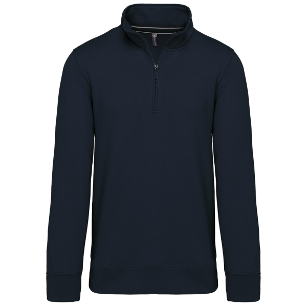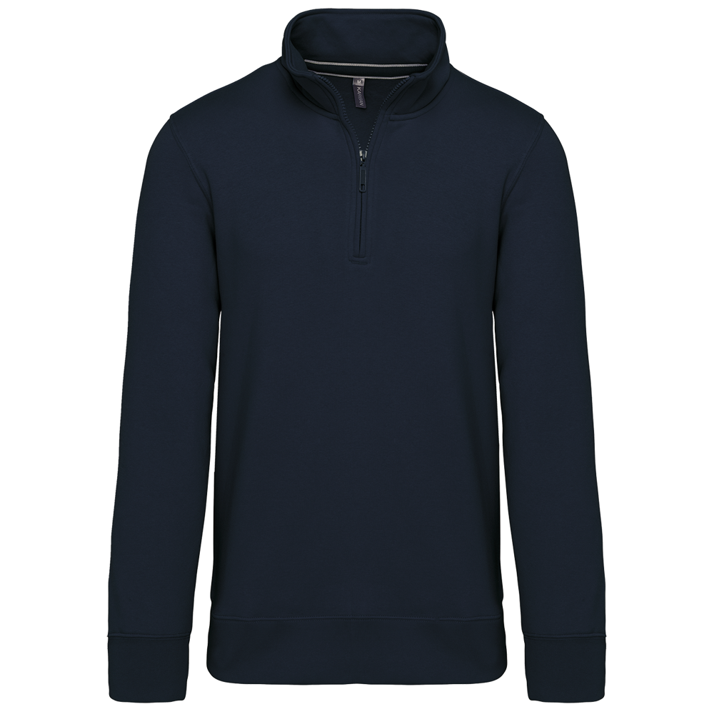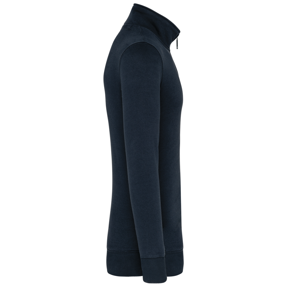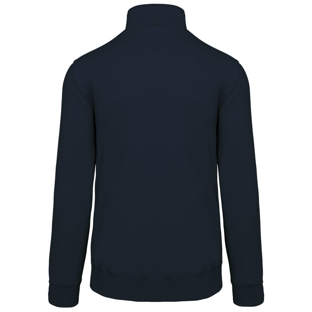 80 % Baumwolle / 20 % Polyester (Ash Heather : 79% Baumwolle / 20% Polyester / 1% Viskose). Außenseiteaus 100% Baumwolle. LSF-Behandlung (Low Shrinkage Fleece: vorgeschrumpftes Fleece). Gebürstetes Fleece mit drei Fäden aus gekämmter Baumwolle. Set-in-Ärmel. Kragen mit farblich abgestimmtem Kunststoff-Reißverschluss. Nackenband in Kontrastfarbe am Kragen (Heather Grey für alle Farben, Navy für Oxford-Grey und Ash Heather). Strickbündchen an Ärmeln und Saum.