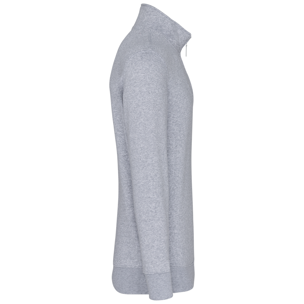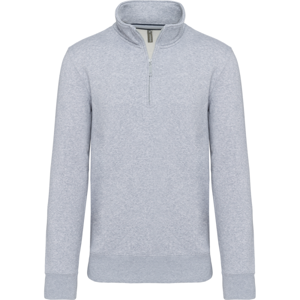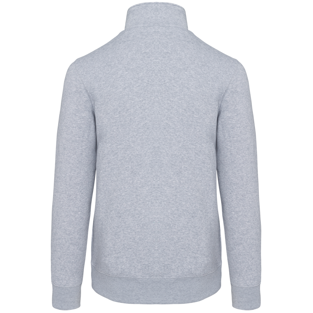 80 % Baumwolle / 20 % Polyester (Ash Heather : 79% Baumwolle / 20% Polyester / 1% Viskose). Außenseiteaus 100% Baumwolle. LSF-Behandlung (Low Shrinkage Fleece: vorgeschrumpftes Fleece). Gebürstetes Fleece mit drei Fäden aus gekämmter Baumwolle. Set-in-Ärmel. Kragen mit farblich abgestimmtem Kunststoff-Reißverschluss. Nackenband in Kontrastfarbe am Kragen (Heather Grey für alle Farben, Navy für Oxford-Grey und Ash Heather). Strickbündchen an Ärmeln und Saum.