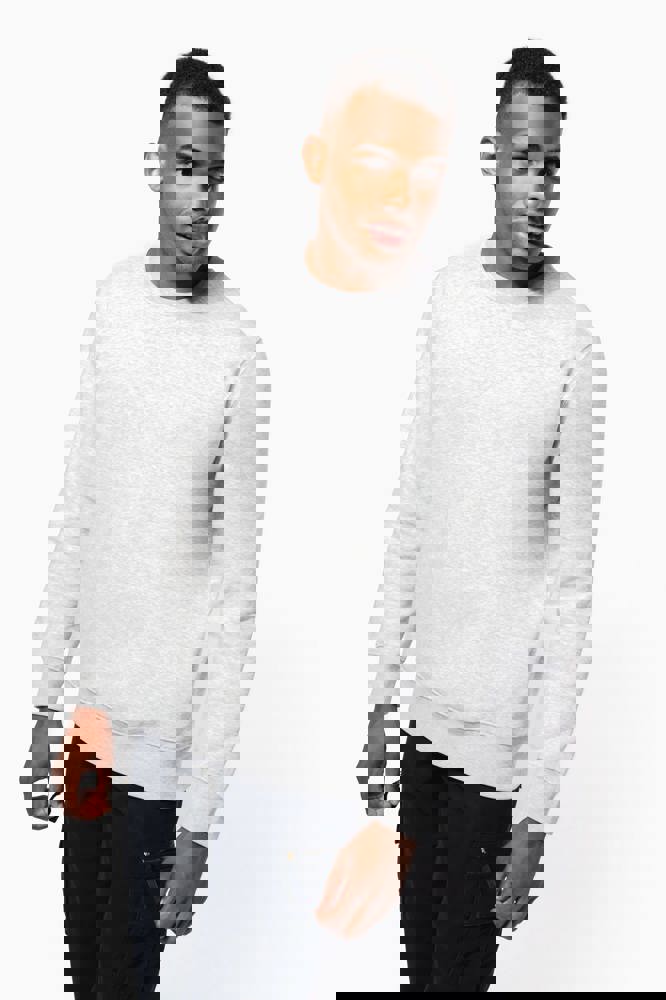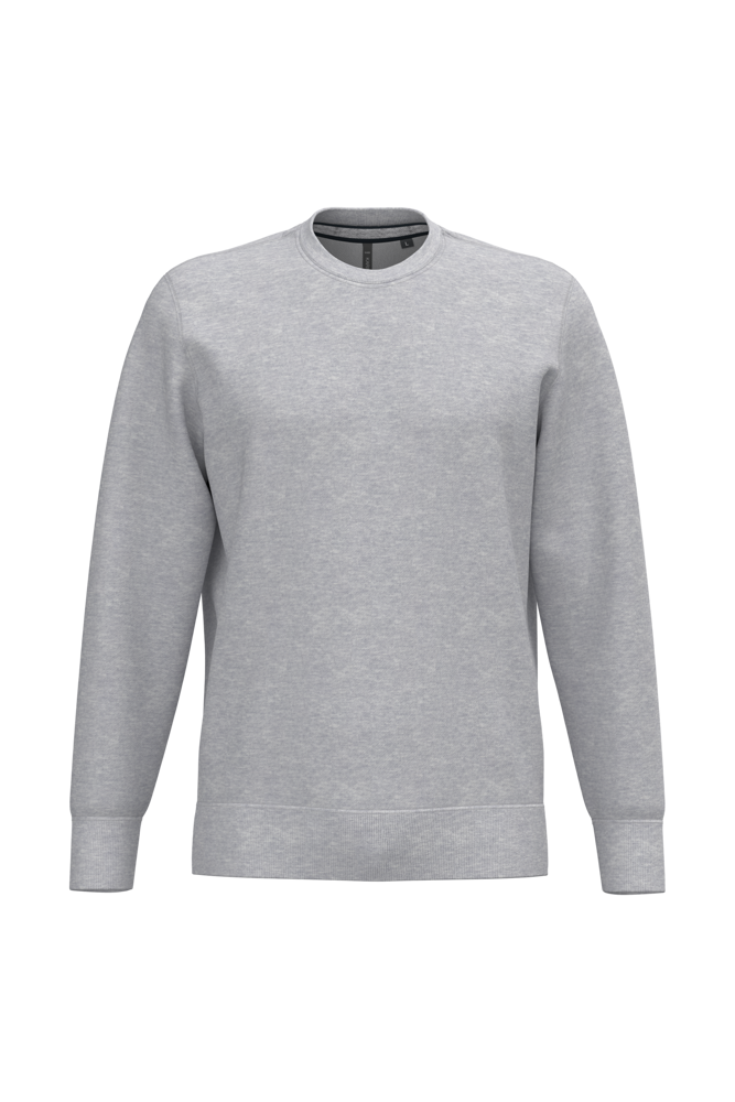 80 % Baumwolle / 20 % Polyester (Ash Heather : 79% Baumwolle / 20% Polyester / 1% Viskose). Außenseiteaus 100% Baumwolle. LSF-Behandlung (Low Shrinkage Fleece: vorgeschrumpftes Fleece). Gebürstetes Fleece mit drei Fäden aus gekämmter Baumwolle. Set-in-Ärmel. Nackenband in Kontrastfarbe am Kragen (Navu für Oxford-Grey und Ash Heather, Heather Grey für alle anderen Farben). Strickbündchen an Ärmeln und Saum.