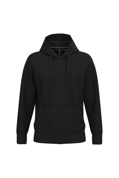 80 % Baumwolle / 20 % Polyester (Ash Heather : 79% Baumwolle / 20% Polyester / 1% Viskose). Außenseiteaus 100% Baumwolle. LSF-Behandlung (Low Shrinkage Fleece: vorgeschrumpftes Fleece). Gebürstetes Fleece mit drei Fäden aus gekämmter Baumwolle. Set-in-Ärmel. Nackenband in Kontrastfarbe am Kragen (Navy für Oxford-Grey und Ash Heather, Heather Grey für alle anderen Farben). Gefütterte Kapuze mit Wabenstruktur und Kordelzug. Kängurutaschen. Strickbündchen an Ärmeln und Saum.