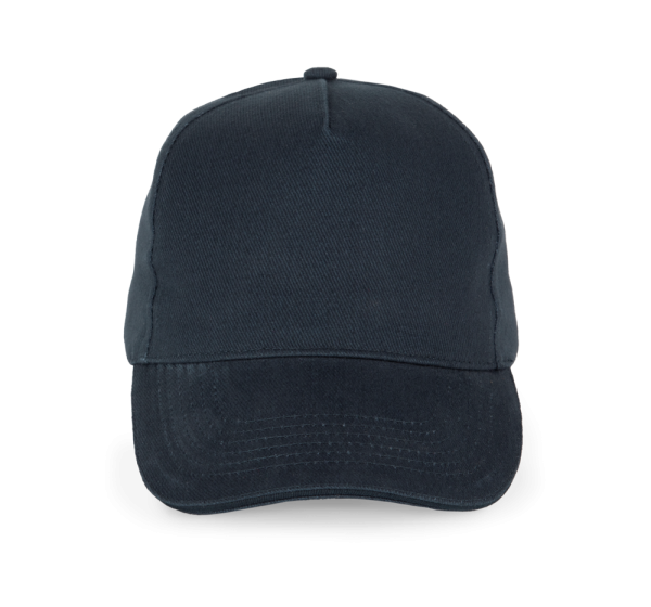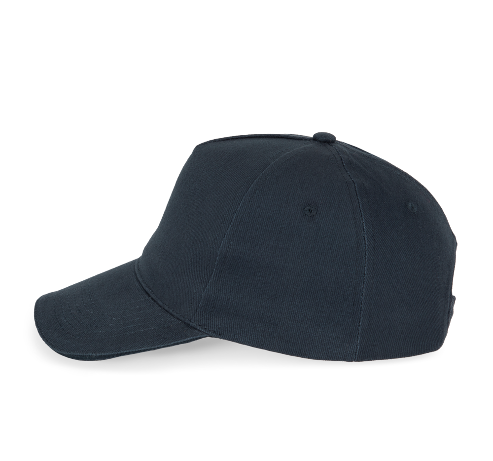 100 % Baumwolle. 5-Panel-Kappe. Über eine Metallschnalle verstellbarer Verschluss mit Schlaufe mit automatischer Blockierung.