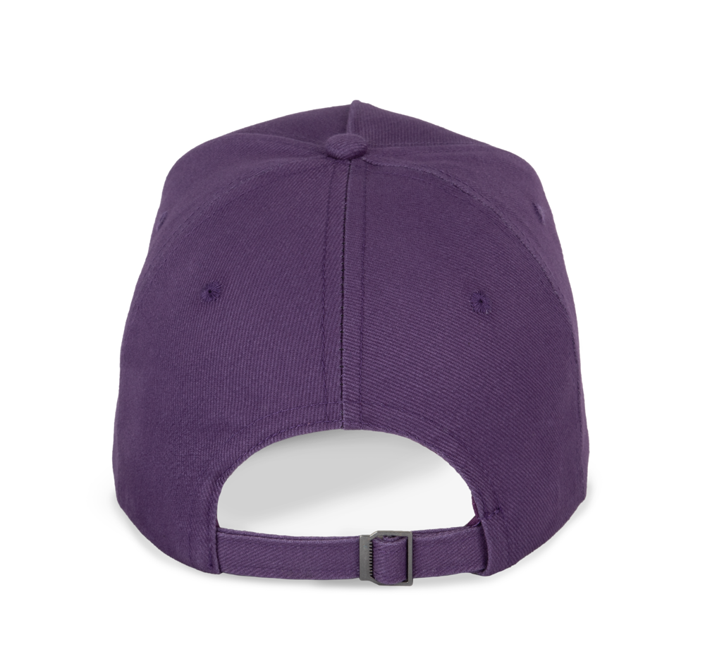 100 % Baumwolle. 5-Panel-Kappe. Über eine Metallschnalle verstellbarer Verschluss mit Schlaufe mit automatischer Blockierung.