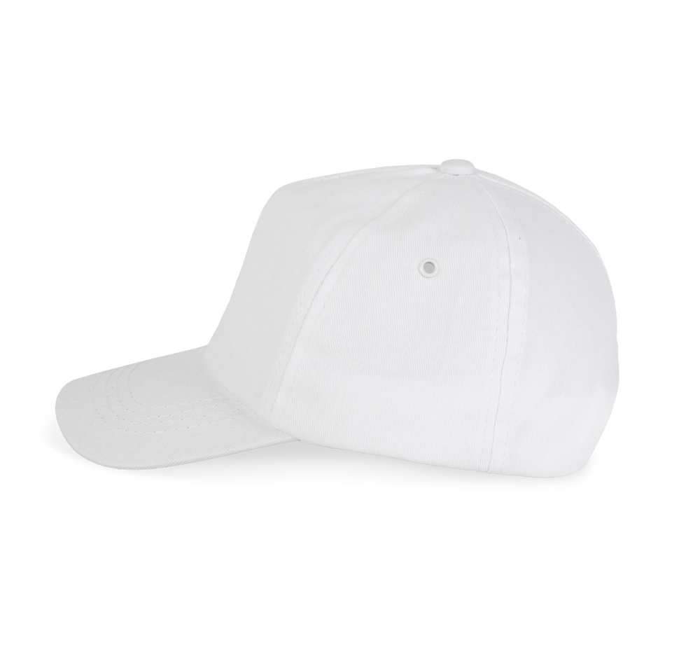 100% Baumwolltwill. Verstärkung des Stirnteils abnehmbar, für eine leichtere Veredelung. Verstellbarer Schnappverschluss.