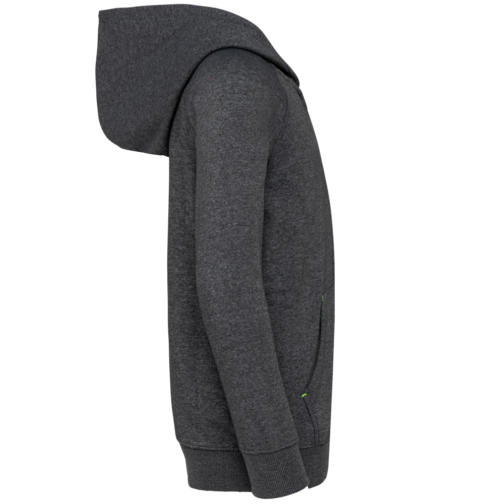 65 % Polyester/35 % Baumwolle. Gebürsteter Molton. Gekämmte Baumwolle. Vortex-Faden. Gerader Schnitt. Raglanärmel. Nylon-Reißverschluss. Mit Ton-in-Ton-Netzstoff gefütterte Kapuze. Nackenband auf der Innenseite der Kapuze und Vertiefungen in fluoreszierenden Farben auf den Taschen. Kängurutaschen mit fluoreszierender Handytasche. 2 x 2 doppelte Rippstrickbündchen an den Ärmeln und am unteren Saum. Halbmondförmiger Halsausschnitt auf der Rückseite für eine einfache Markenveredelung auf der Innenseite. Markenetikett zum Abreißen.
