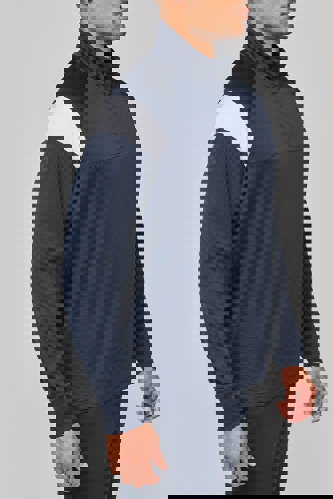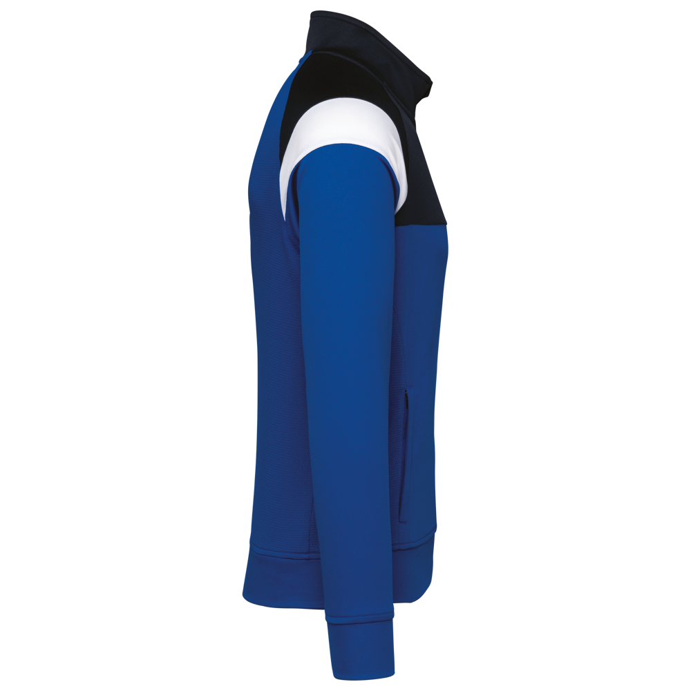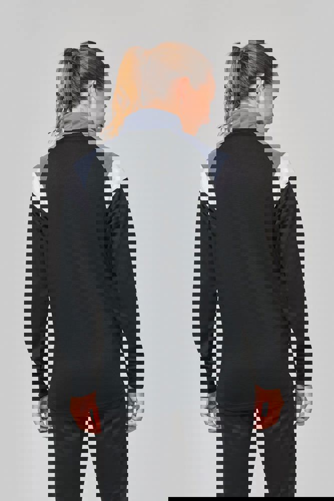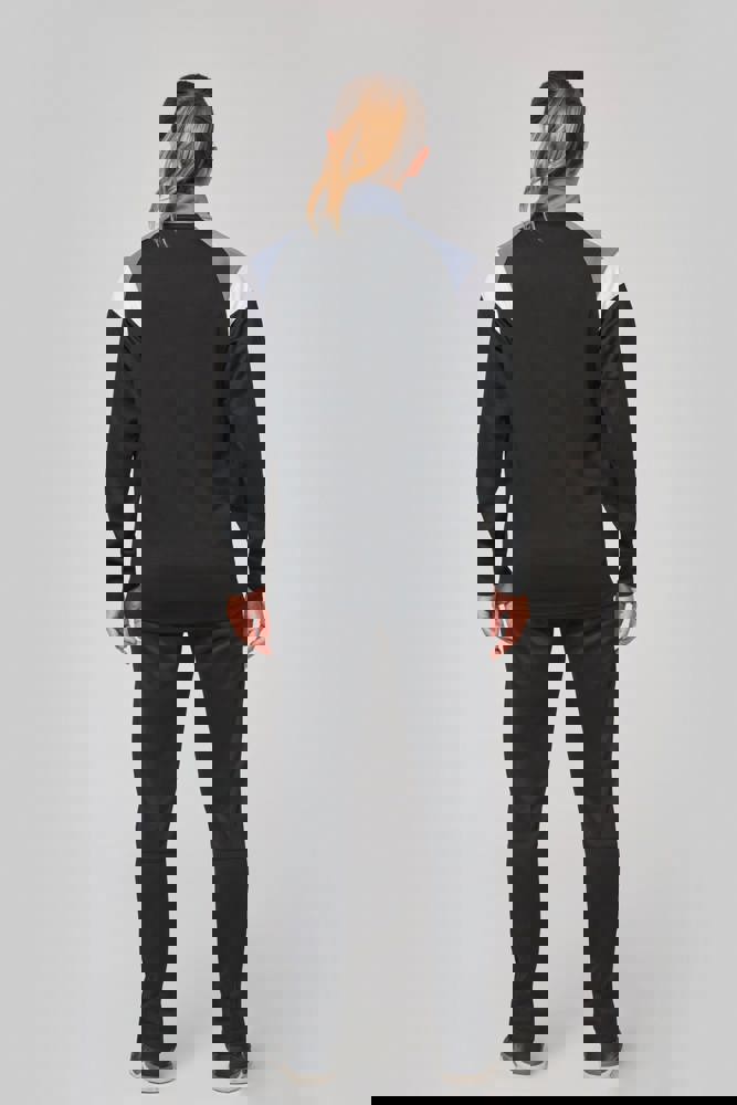 100 % Polyester-Interlock. Gerader Schnitt. Kragen mit umgekehrtem Reißverschluss aus farblich abgestimmtem Nylon. Raglanärmel mit farblich abgesetzten Schultereinsätzen. Farblich abgesetzter Brust- und Schulterausschnitt. Einsätze aus strukturiertem Stoff an den Seiten und im Rücken. Unterer Saum und verlängerter Rücken. Seitenschlitze für mehr Komfort. Reißverschlussabdeckung am oberen Rand des Kragens für zusätzlichen Komfort. Abtrennbares Marken-Label für eine einfache Veredelung.