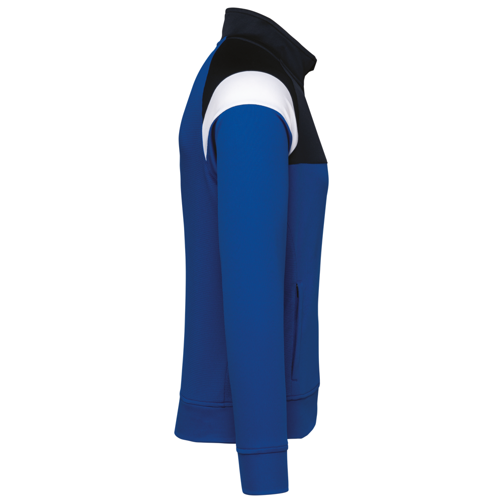 100 % Polyester-Interlock. Gerader Schnitt. Kragen mit umgekehrtem Reißverschluss aus farblich abgestimmtem Nylon. Raglanärmel mit farblich abgesetzten Schultereinsätzen. Farblich abgesetzter Brust- und Schulterausschnitt. Einsätze aus strukturiertem Stoff an den Seiten und im Rücken. Unterer Saum. Verlängerter Rücken und Seitenschlitze für mehr Komfort. Reißverschlussabdeckung am oberen Rand des Kragens für zusätzlichen Komfort. Abtrennbares Marken-Label für eine einfache Veredelung.