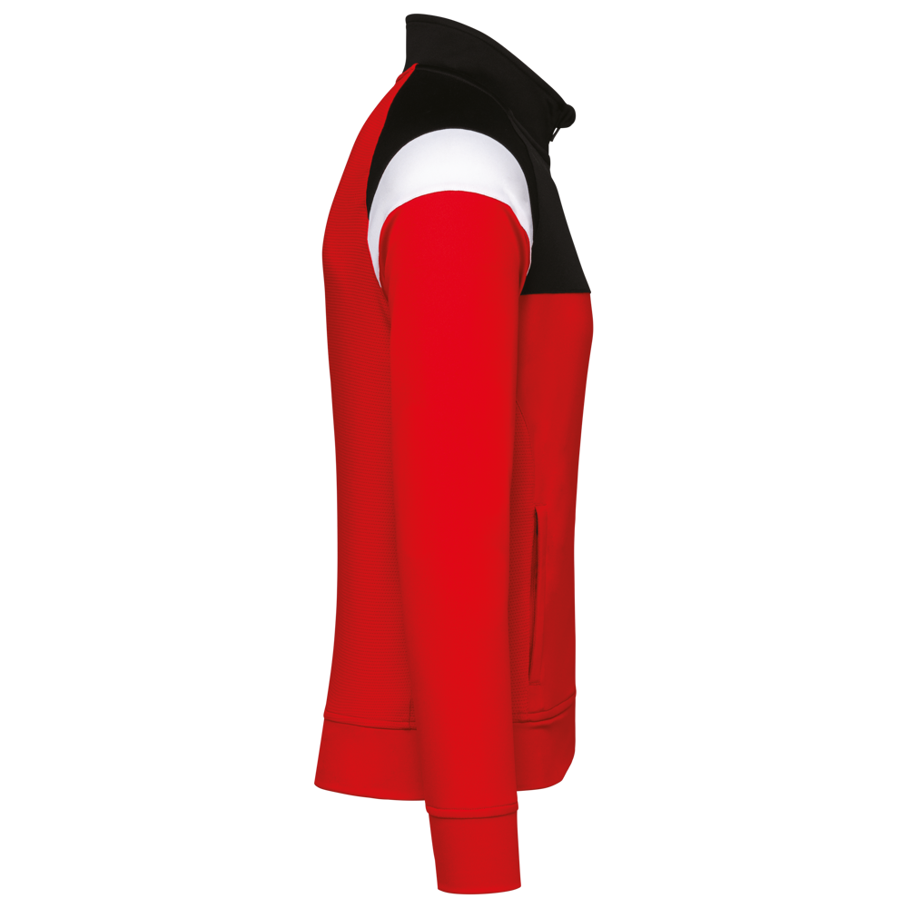 100 % Polyester-Interlock. Gerader Schnitt. Kragen mit umgekehrtem Reißverschluss aus farblich abgestimmtem Nylon. Raglanärmel mit farblich abgesetzten Schultereinsätzen. Farblich abgesetzter Brust- und Schulterausschnitt. Einsätze aus strukturiertem Stoff an den Seiten und im Rücken. Unterer Saum. Verlängerter Rücken und Seitenschlitze für mehr Komfort. Reißverschlussabdeckung am oberen Rand des Kragens für zusätzlichen Komfort. Abtrennbares Marken-Label für eine einfache Veredelung.