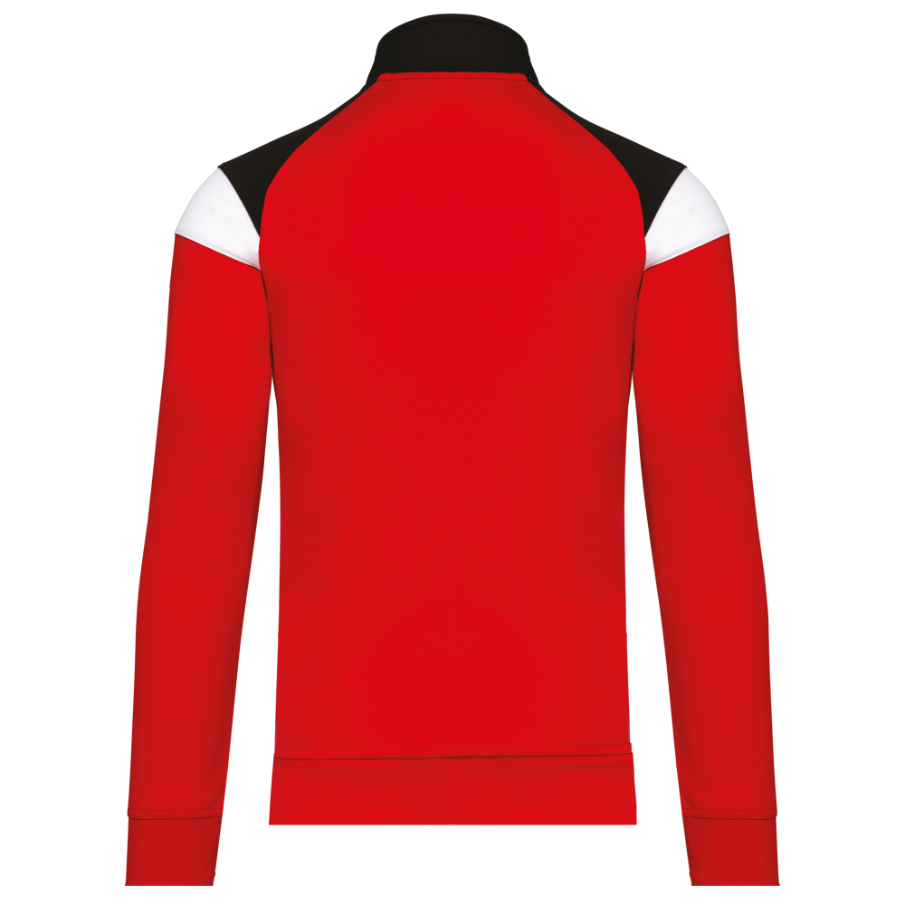 100 % Polyester-Interlock. Gerader Schnitt. Verschluss vorne mit umgekehrtem Reißverschluss aus farblich abgestimmtem Nylon. Raglanärmel mit farblich abgesetzten Schultereinsätzen. Farblich abgesetzter Brust- und Schulterausschnitt. 2 Taschen mit Reißverschluss vorne. Einsätze aus strukturiertem Stoff an den Seiten und im Rücken. Reißverschlussabdeckung am oberen Rand des Kragens für zusätzlichen Komfort. Abtrennbares Marken-Label für eine einfache Veredelung.