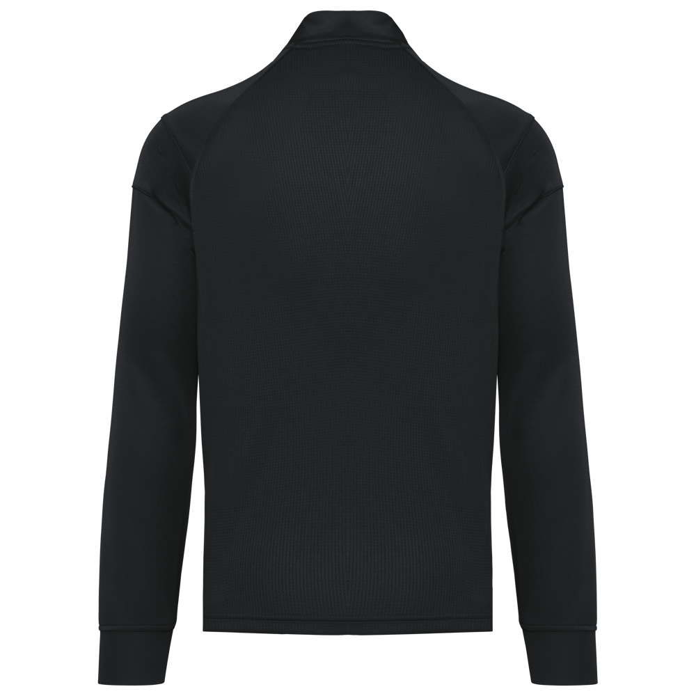 96 % Polyester / 4 % Elasthan. Gerader Schnitt. Vorderer Verschluss mit umgekehrtem Reißverschluss aus recyceltem, farblich abgestimmtem Nylon. Raglanärmel mit Schulterausschnitten. Ärmelbündchen aus Hauptmaterial. 2 Taschen mit Reißverschluss vorne. Farblich abgestimmter strukturierter Stoff an der Seite und im Rücken. Reißverschlussabdeckung am oberen Rand des Kragens für zusätzlichen Komfort. Unterer Saum. Verlängerter Rücken und Seitenschlitze. Abtrennbares Marken-Label für eine einfache Veredelung.