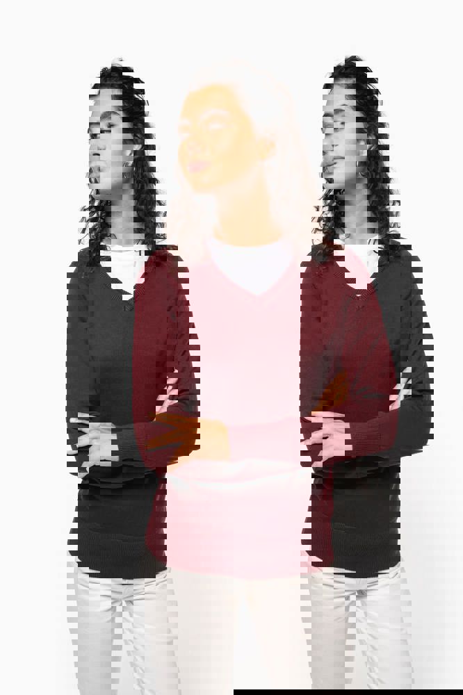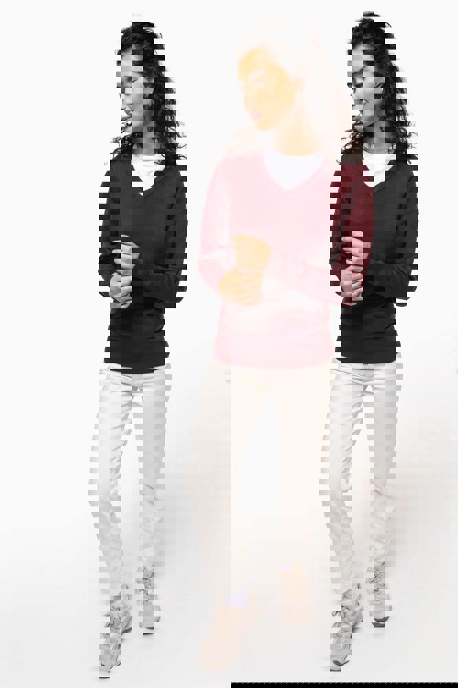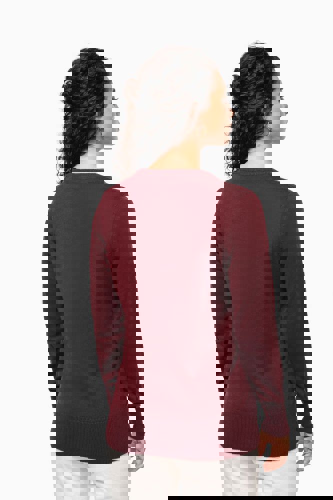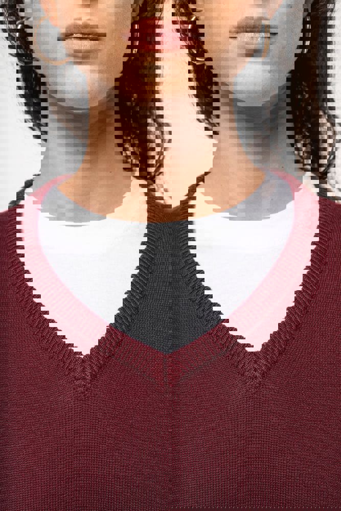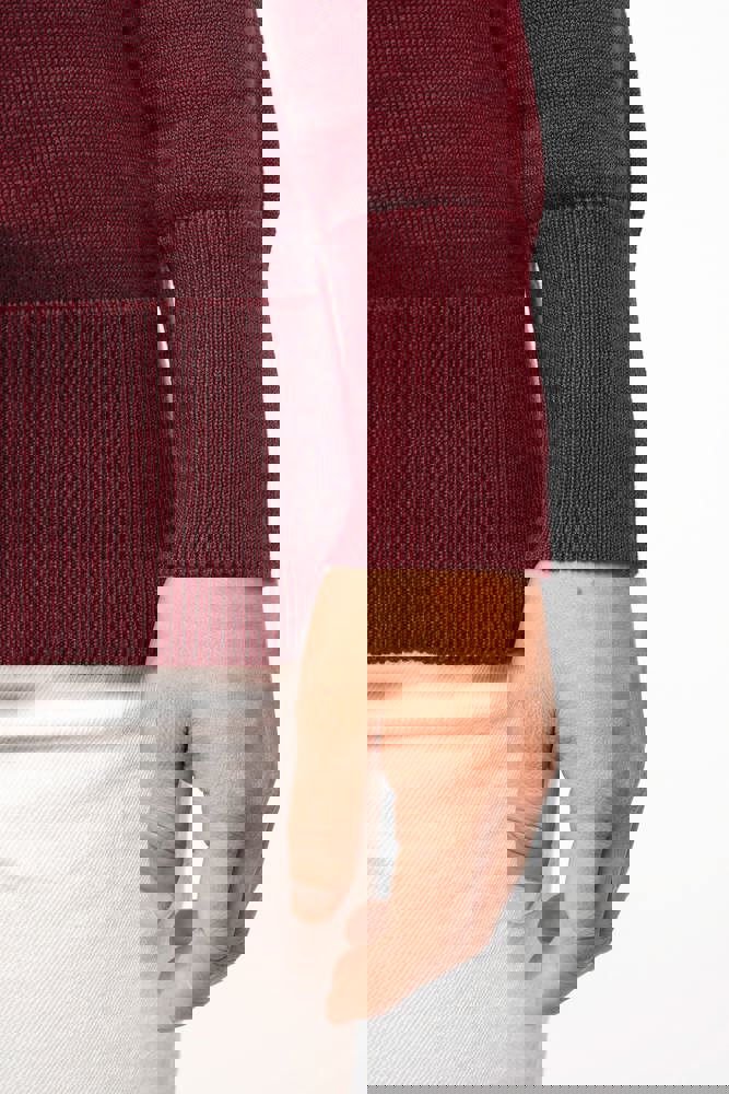 50% Baumwolle / 50% Acryl. Figurbetonend. Gedoppelter Rippstrickkragen. Nackenband mehr