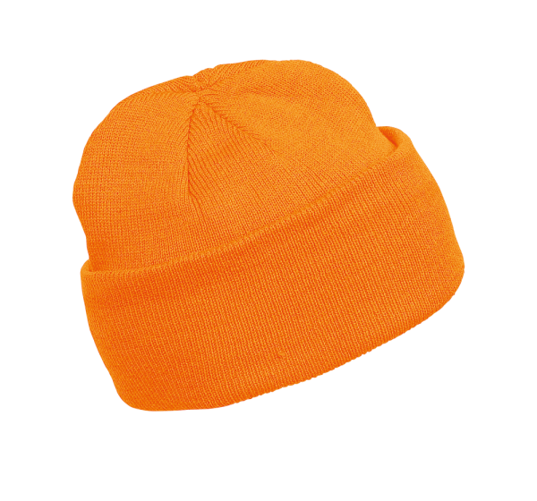 Gestrickte Mütze aus 100% Acryl. Kugelform.