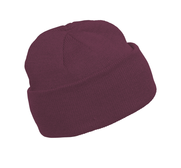Gestrickte Mütze aus 100% Acryl. Kugelform.