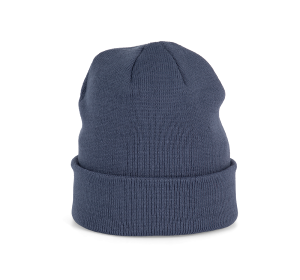Gestrickte Mütze aus 100% Acryl. Kugelform.