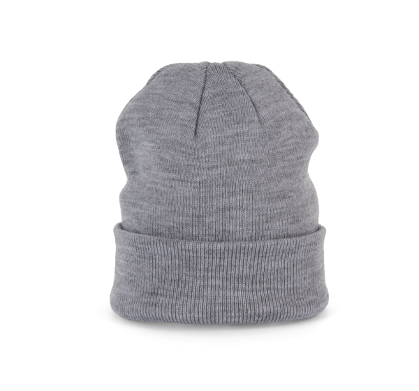 Gestrickte Mütze aus 100% Acryl. Kugelform.