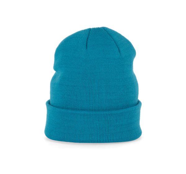 Gestrickte Mütze aus 100% Acryl. Kugelform.
