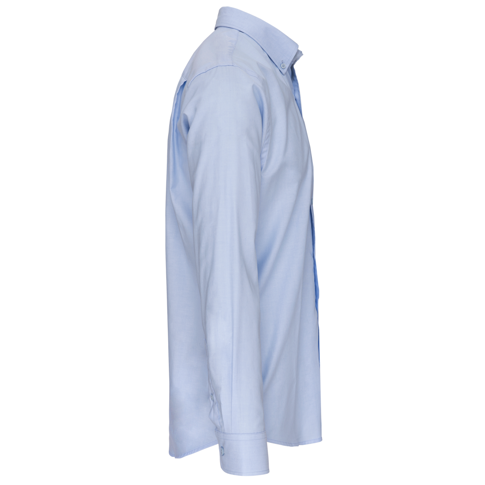 70% Baumwolle / 30% Polyester. Pflegeleichter Stoff. Verstärkter Button-Down-Kragen. Farblich abgestimmte Knöpfe. Aufgesetzte Brusttasche auf der linken Seite. Rückwärtige Schulterpasse mit 2 an den Seiten eingelegten Falten. Abgeschrägte Manschette mit 2 Knöpfen, dazu 1 Knopf auf dem Manschettenaufschlag. 2 Ersatzknöpfe. Abgerundeter Saum.
