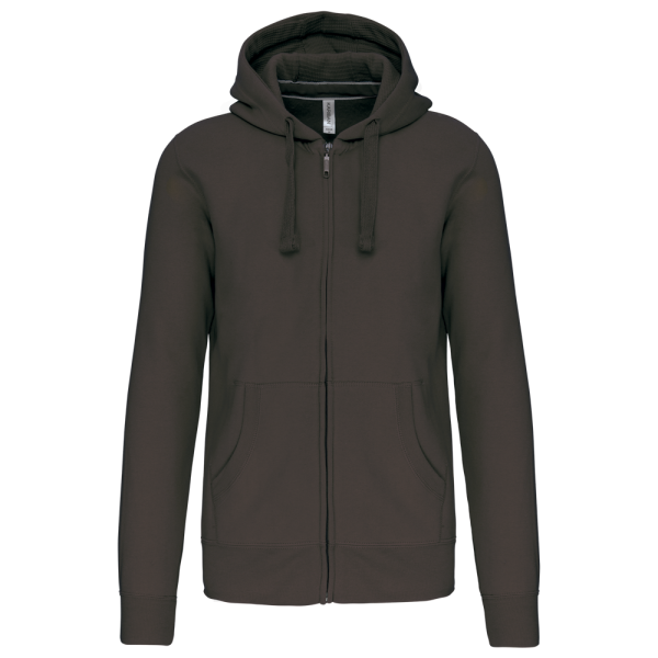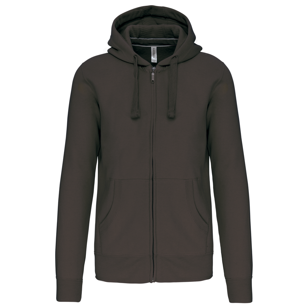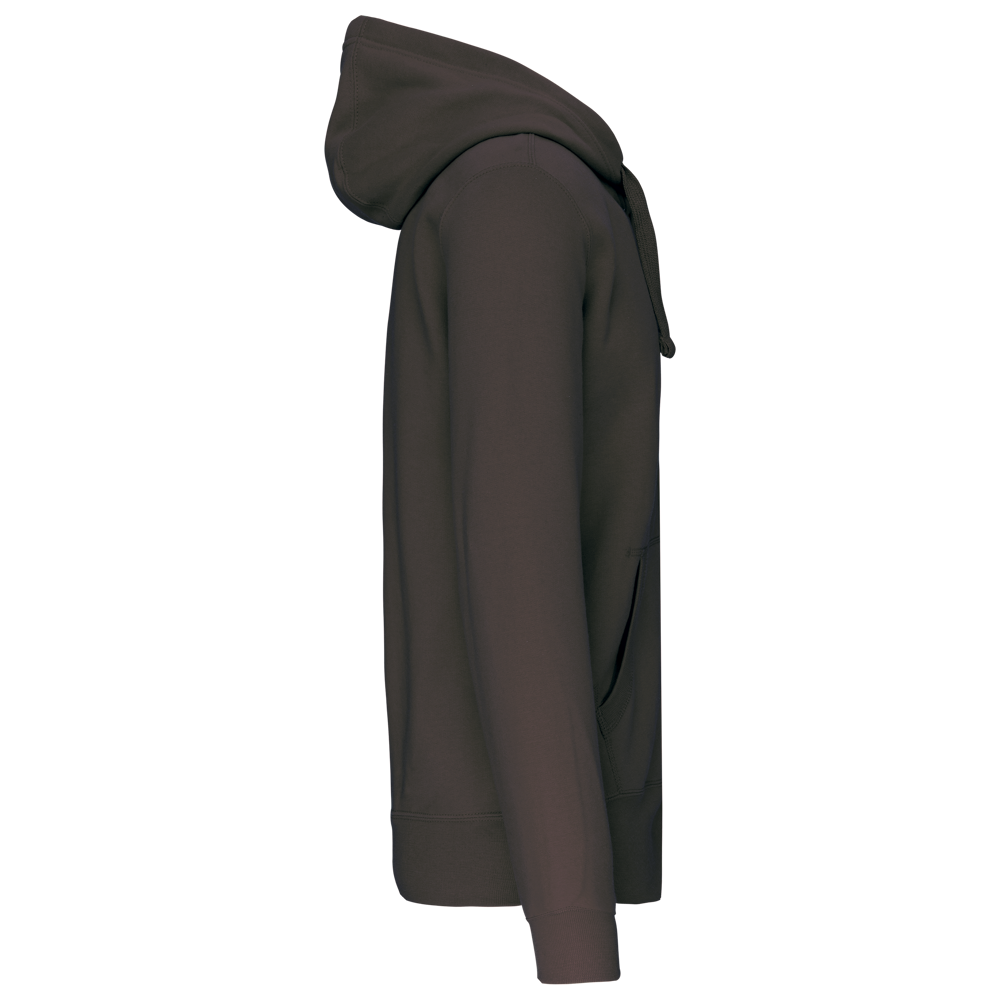 80% Baumwolle / 20% Polyester (Ash Heather : 79% Baumwolle / 20% Polyester / 1% Viskose). Außenseiteaus 100% gekämmte Baumwolle. Gebürstetes Fleece. Verstärktes Kontrast-Nackenband (Heather Grey für alle Farben, Navt für Oxford-Grey und Ash Heather). Kängurutasche. Gerippt an Bund und Saum. Gefütterte Kapuze in Kontrastfarbe innen und Kordelzug. Reißverschluss.