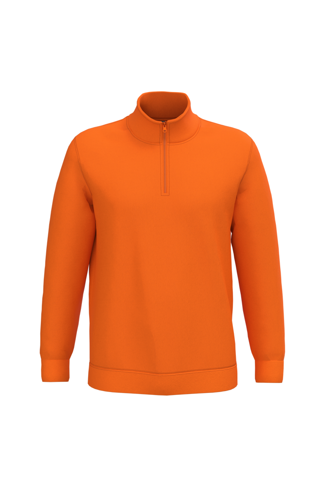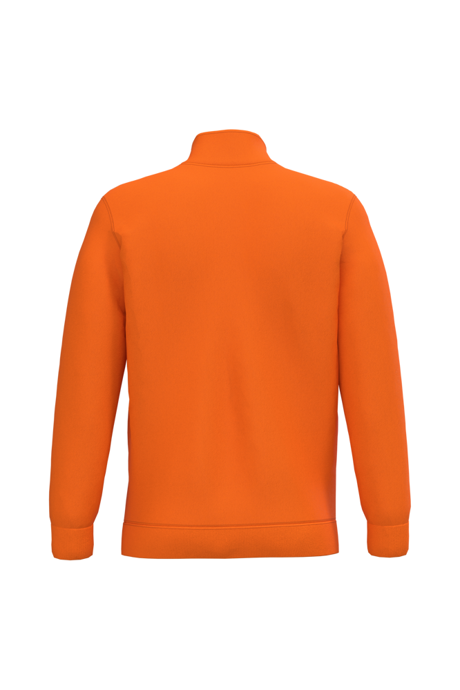 80 % Baumwolle / 20 % Polyester. Gekämmte Baumwolle. Gebürstetes Fleece. Set-in-Ärmel. Reißverschluss am Kragen und Nackenband. Saum und Ärmelbündchen in Rippstrick.