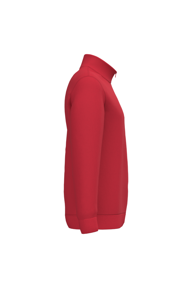 80 % Baumwolle / 20 % Polyester. Gekämmte Baumwolle. Gebürstetes Fleece. Set-in-Ärmel. Reißverschluss am Kragen und Nackenband. Saum und Ärmelbündchen in Rippstrick.