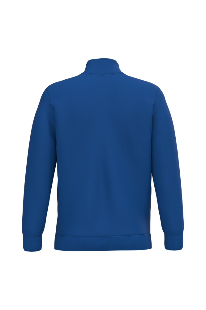 80 % Baumwolle / 20 % Polyester. Gekämmte Baumwolle. Gebürstetes Fleece. Set-in-Ärmel. Reißverschluss am Kragen und Nackenband. Saum und Ärmelbündchen in Rippstrick.