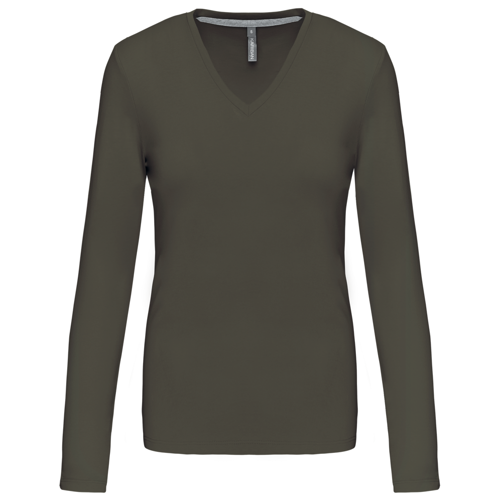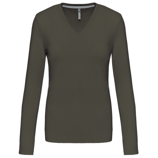 K382C - Damen-Langarmshirt mit V-Ausschnitt