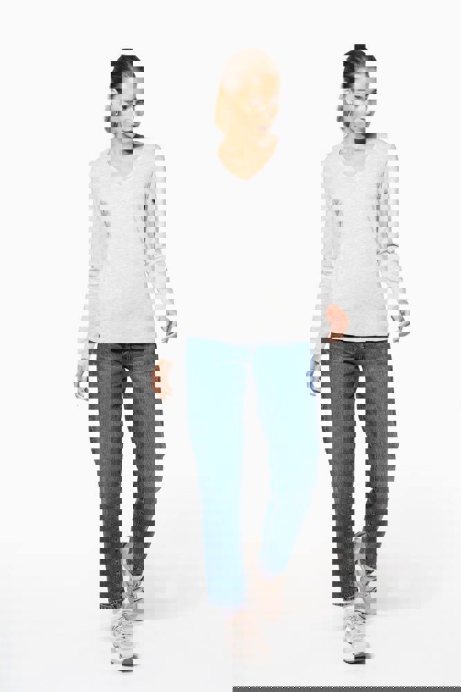 100% gekämmte Baumwolle, Enzymwäsche veredelt (Oxford Grey: 90 % Baumwolle/10 % Viskose). Feminin tailliert. Nackenband (Oxford Grey bei farbigen Shirts, White bei weißen Shirts, Dark Grey bei Shirts in Oxford Grey). Doppelnähte an Ärmeln und Saum.
