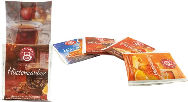 Inhalt: 4 Teebeuteln, je ca. 2,5 g (Winterzeit, Hüttenzauber, Süßer Bratapfel, Kuschelabend)