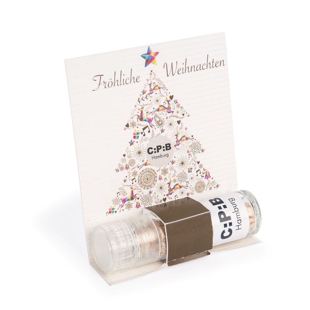 Originell, stimmungsvoll und effektiv – die Zuckermühle in weihnachtlich gestalteter Einsteckkarte besitzt viel Aufmerksamkeitspotenzial.