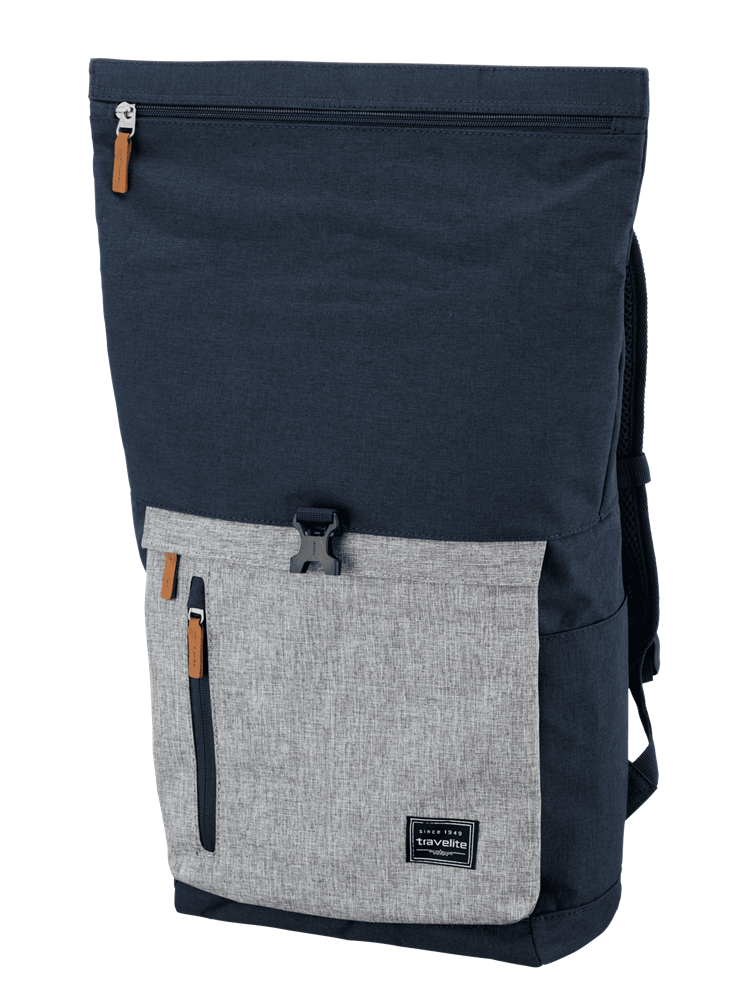 TRAVELITE BASICS Rollup Rucksack, Marine/Grau